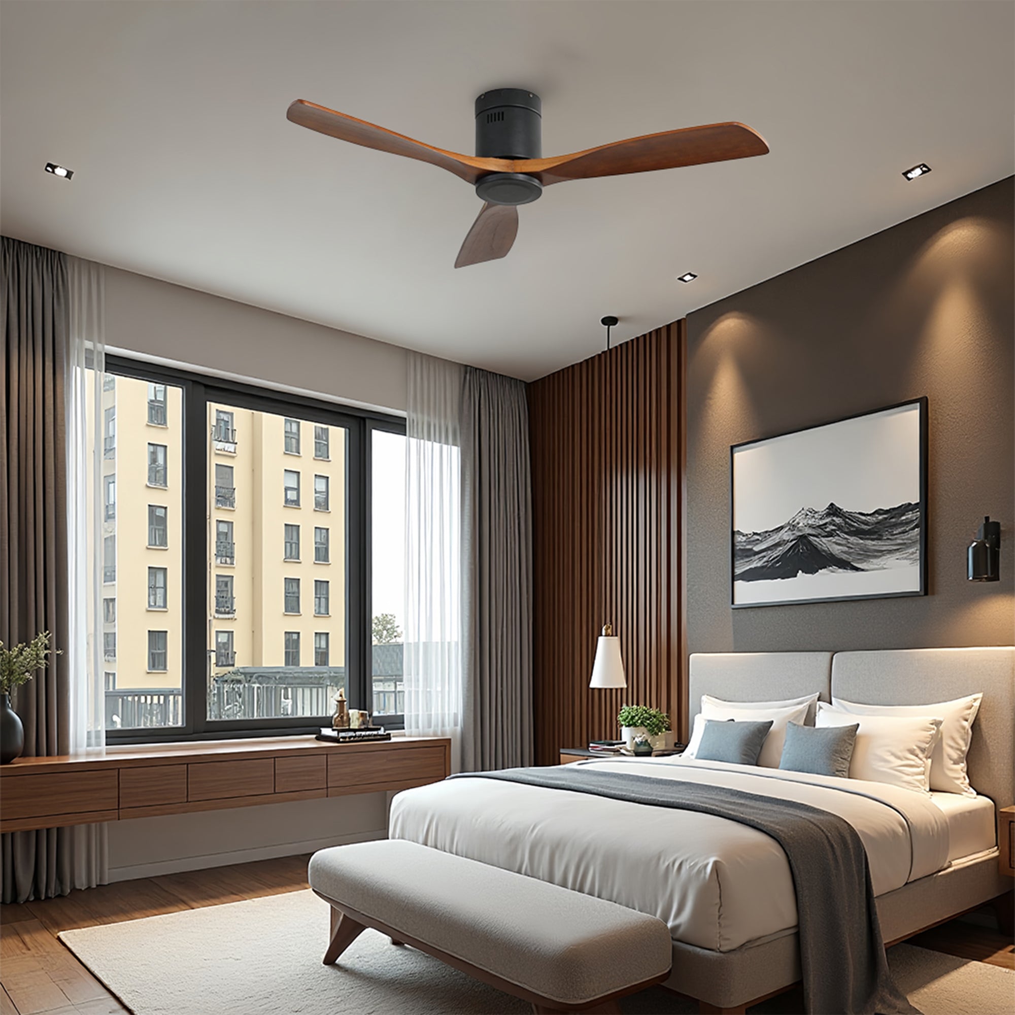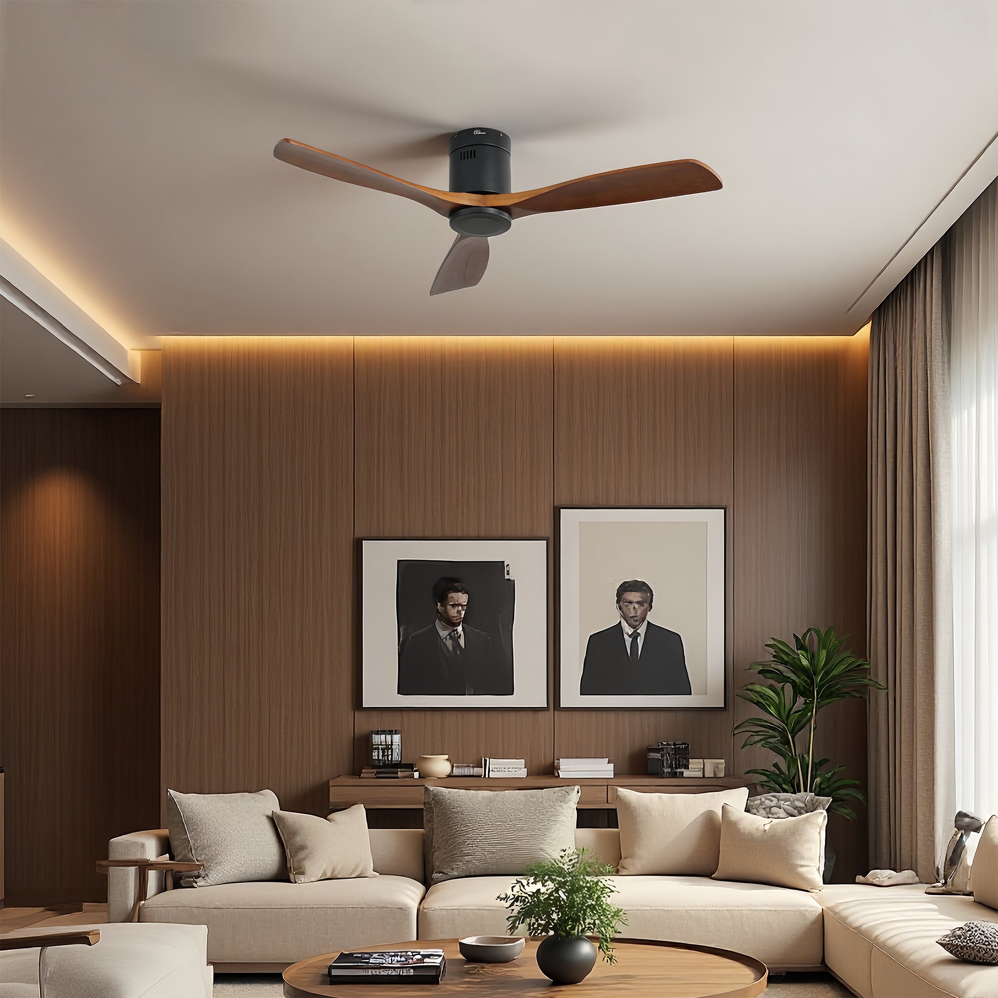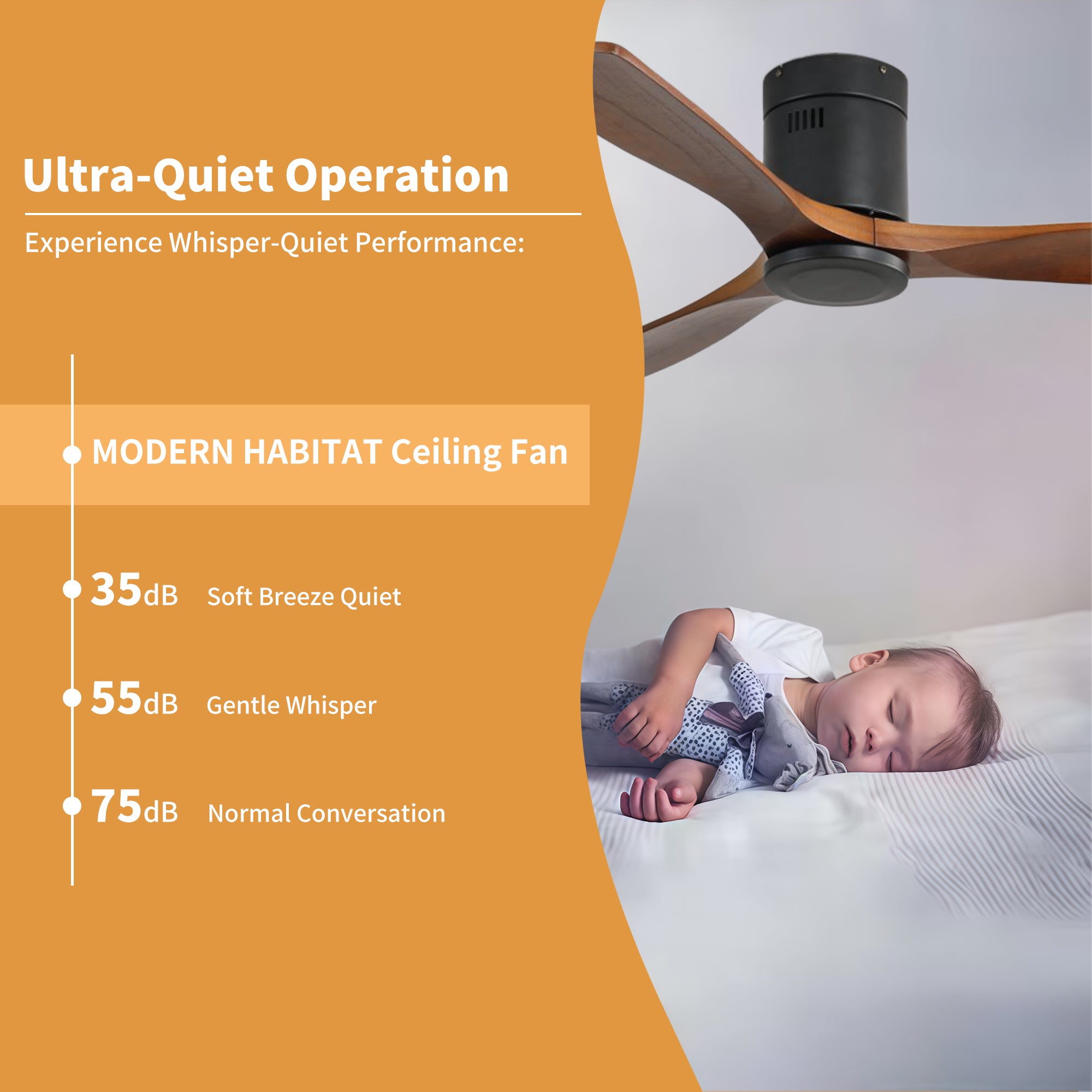 Refresh your living space, whether indoor or outdoor, this summer, with 52 in. industrial Matte Black ceiling fan with light from Modern Habitat Inc. The Three Walnut blades feature a high-end classic metal finishings, complemented by a quiet DC motor that offers Six speeds and Three timer settings with remote control. The retro refined metal finishing brings classic modern style to your living areas, from living rooms and kitchens to home offices and bedrooms, adapting to various ceiling heights from close-mount to high ceiling. The fan includes easy-install Quiet Motor technology with three airflow modes for whisper-quiet operation.