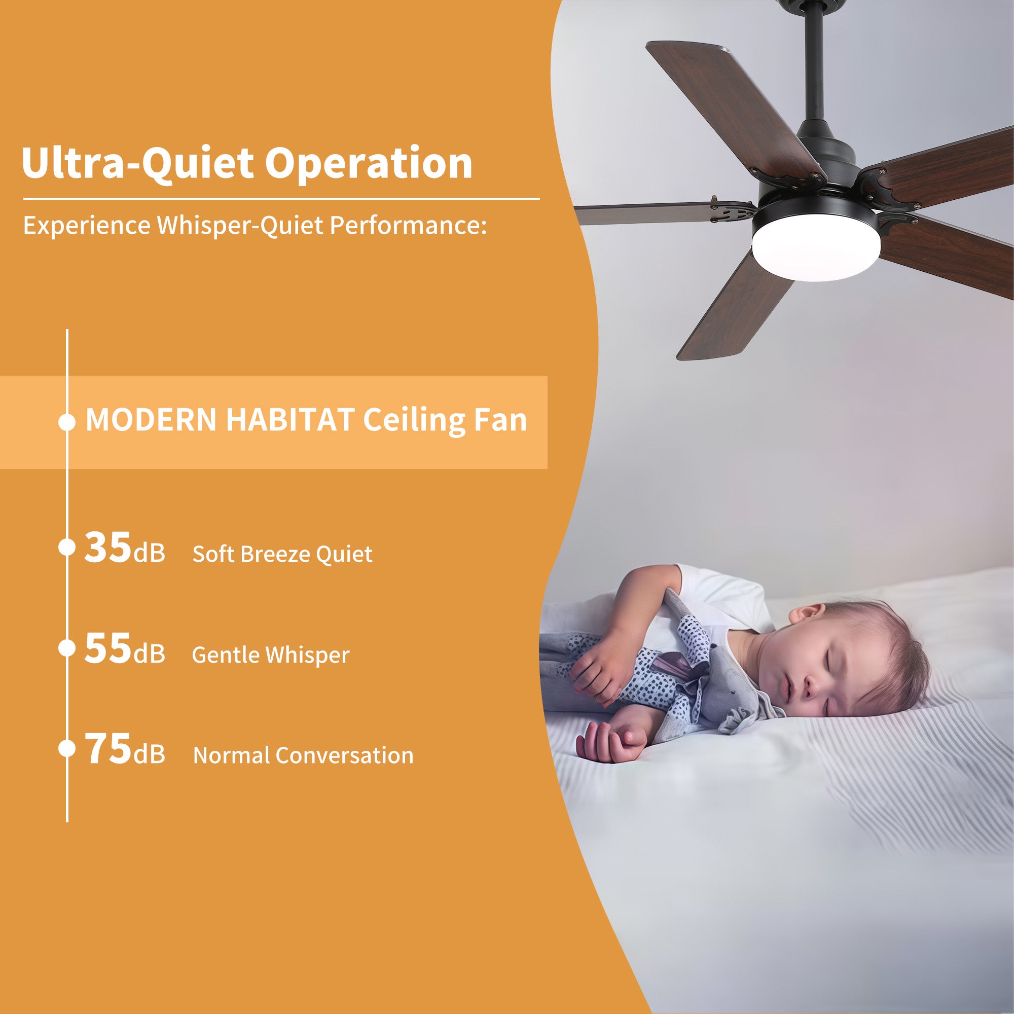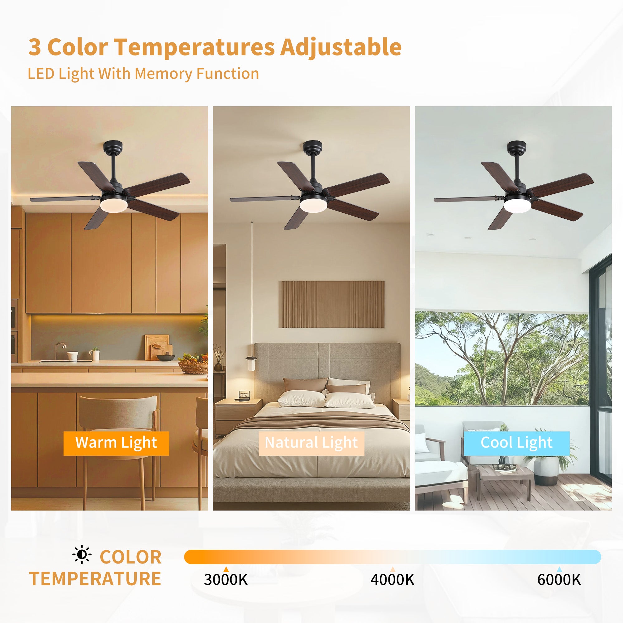 Stay warm and comfortable all winter with the 42 in. Matte Black Metal ceiling fan with light from Modern Habitat. Featuring Five solid wood blades with a reverse function that provides a winter ceiling fan setting mode, and comes with a remote control. The minimal design fits interiors that present both traditional and modern American lifestyles. The fan features easy-install Quiet Motor technology with three airflow modes, guaranteeing minimal noise. A quiet DC motor provides six adjustable speeds and three timer settings. It comes with a 5 and 10 in. downrod to fit spaces from 200–400 square feet — from living rooms and kitchens to home offices and bedrooms — accommodating various ceiling heights from open-mount to high ceilings. The mounting options also allow installation on angled ceilings up to 15°. Warm lighting settings come with three lighting temperature options to help improve air circulation and enhance your holiday home living experience.