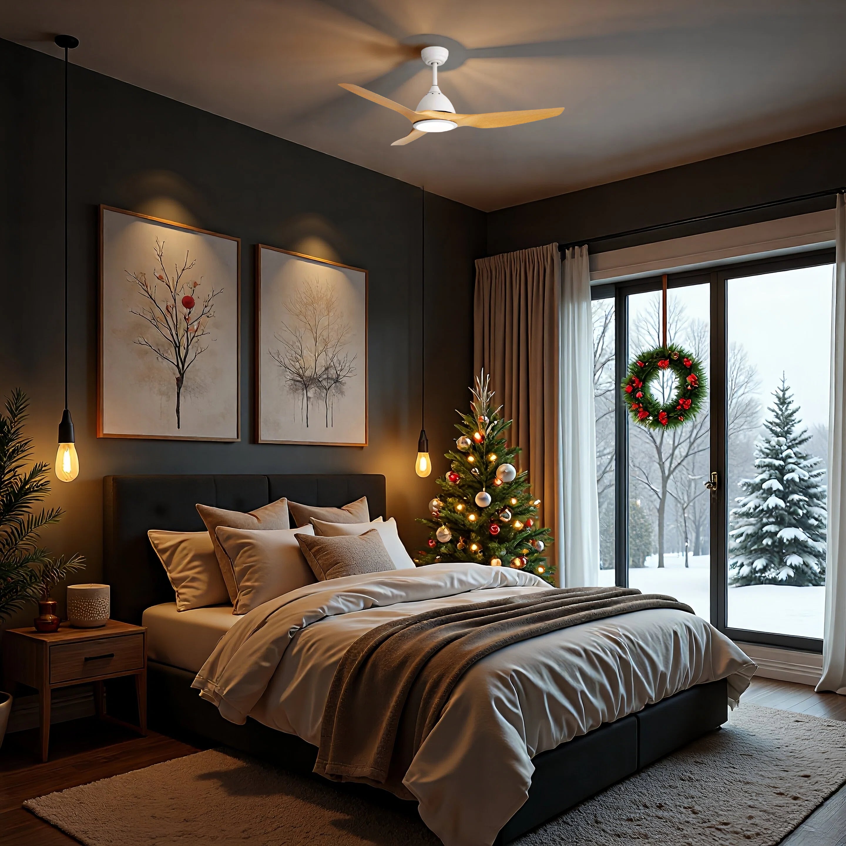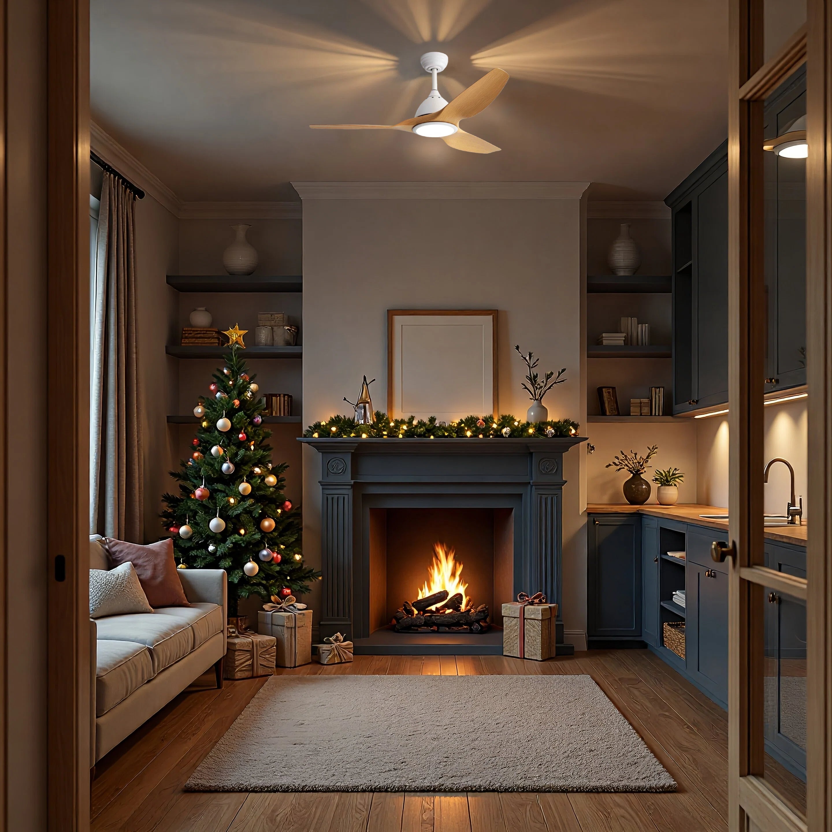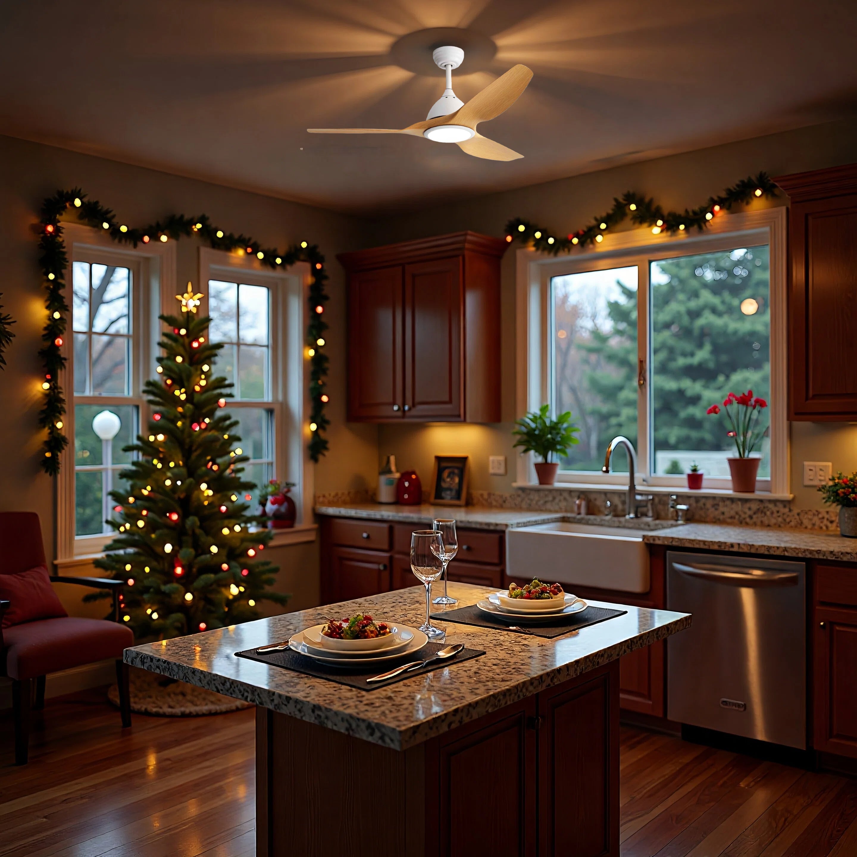 Refresh your living space, whether indoor or outdoor, this summer, with the AuraVista Collection 52 in. Natural Matte White ceiling fan with light from Modern Habitat. The three blades feature a modern farmhouse style with a quiet DC motor that provides six adjustable speeds and timer settings with remote control. lt comes with dual-mount hardware and downrod sizes (5,10,24 in,) to fit spaces from 200-400 square feet, from living roomsand kitchens to home office bedrooms, accommodating various ceiling heights from close-mount to high ceiling. The mounting options also allow installation on a pitched ceiling at a max angle of 15 degrees. The fan features easy-install Quiet Motor technology with two airflow models, auaranteein a minimal noise.