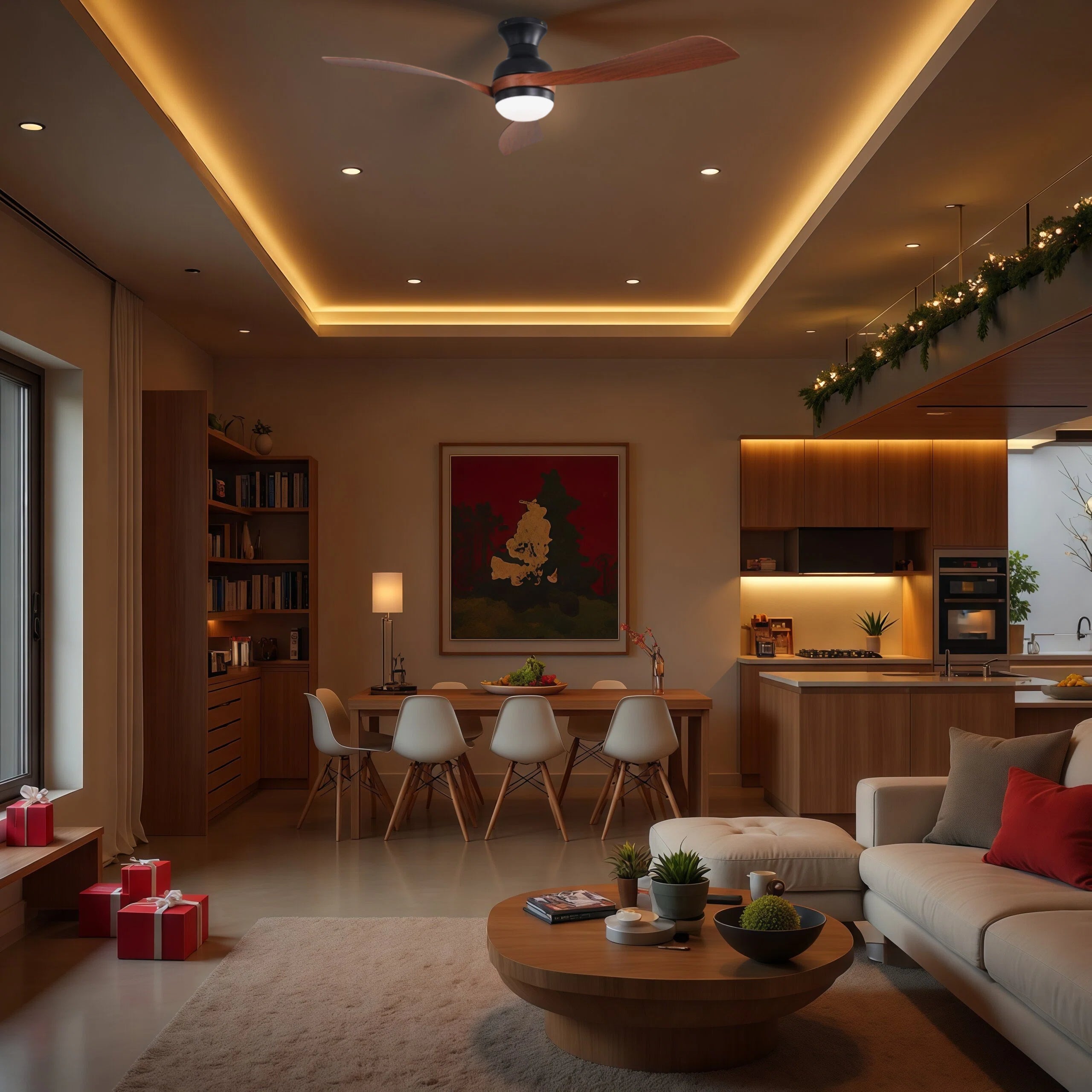 Elevate your home's comfort and style with the MODERN HABITAT 52-inch Ceiling Fan, featuring a sleek black finish and deep wood Walnut ABS blades. Designed for both performance and durability, this fan adds a modern touch to any living space.Equipped with a quiet, reversible DC motor, it delivers efficient airflow at multiple speeds while supporting energy-saving reverse mode. The built-in dimmable 18W LED light offers three color temperatures and memory function, allowing you to customize the perfect ambiance.Included is a six-speed extended handheld remote for convenient control of fan speed, light brightness, color temperature, rotation direction, and 1H/4H/8H timer-all from the comfort of your couch.