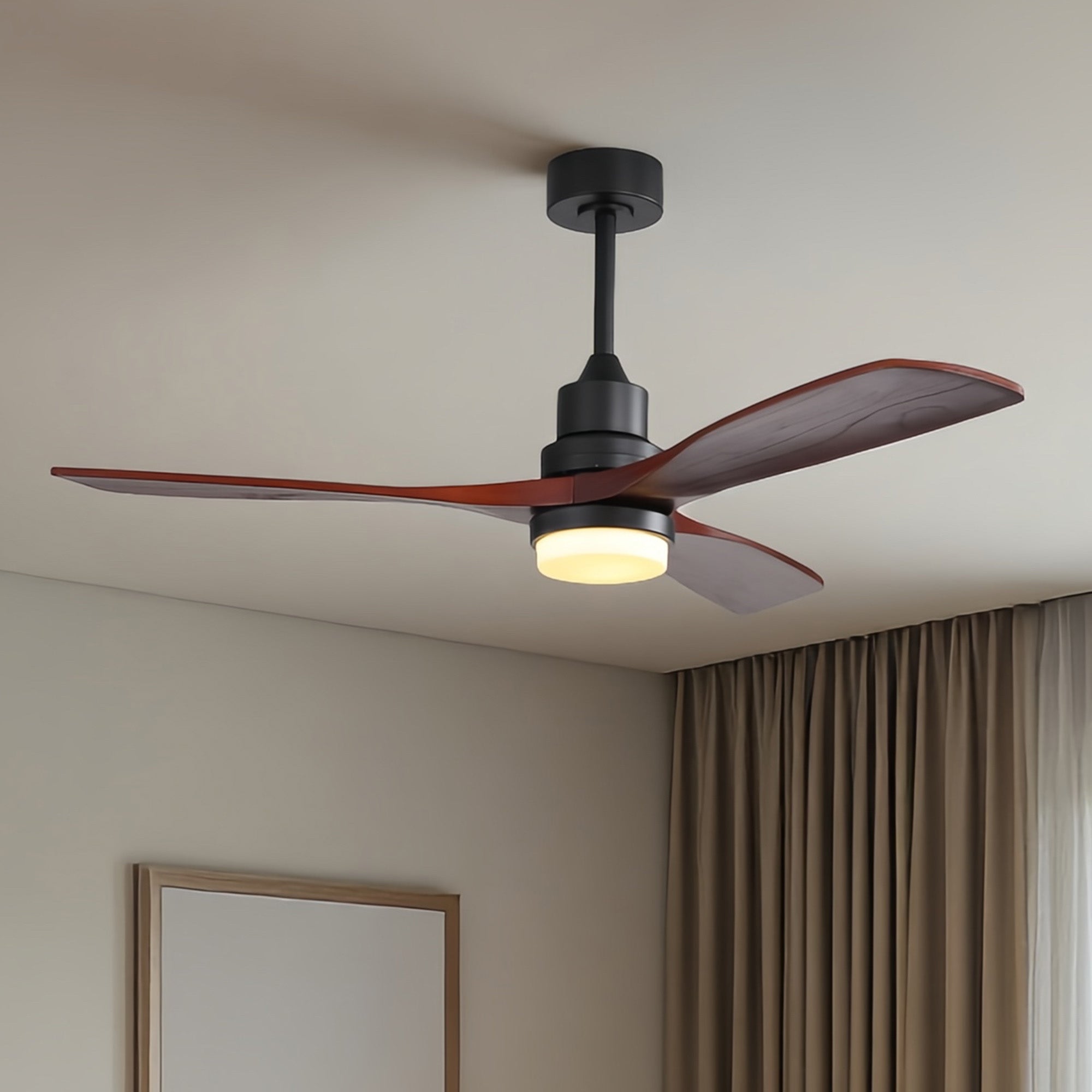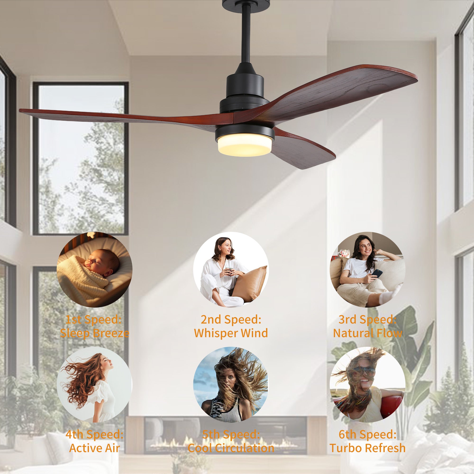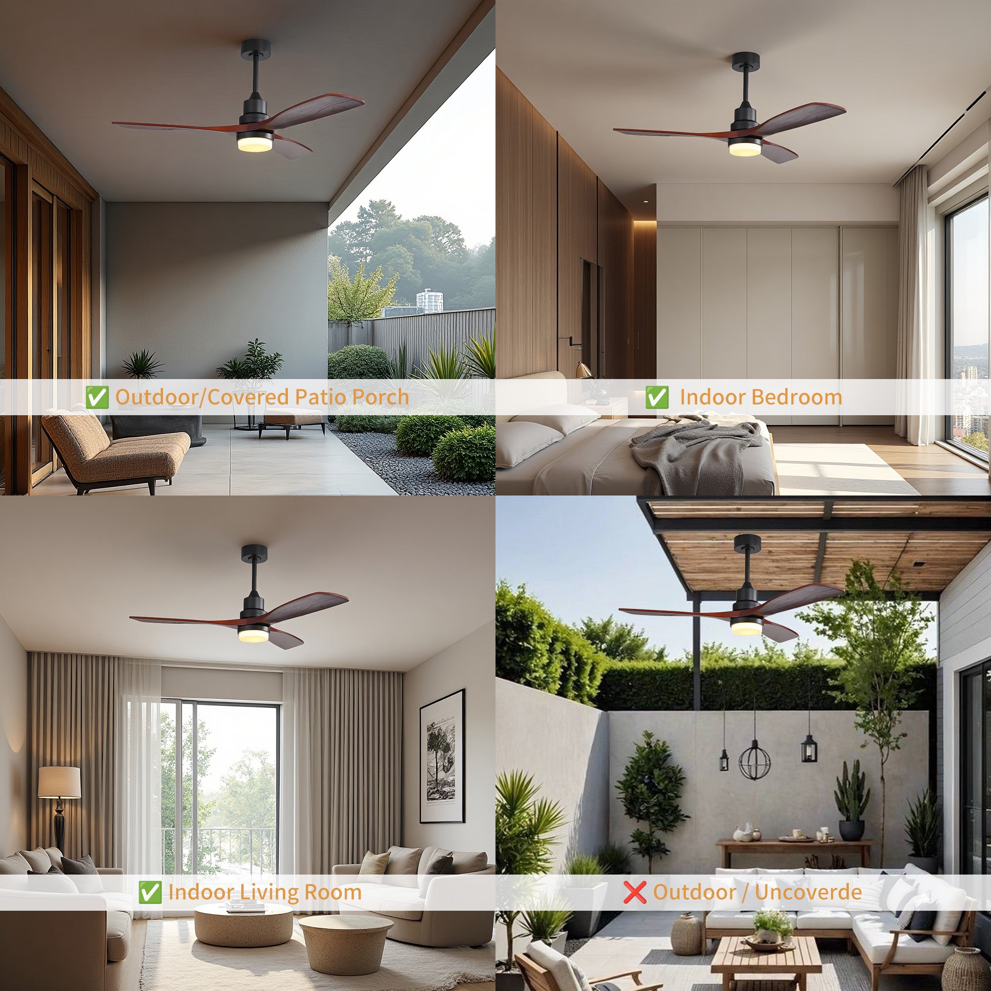 This Indoor Black Ceiling Fan with Light Refresh your living space, whether indoor or outdoor, this summer, with the AuraVista Collection 52 in. Natural Matte Black ceiling fan with light from Modern Habitat. The 3 natural brown wood blades feature a modern farmhouse style with a quiet DC motor that provides 6 adjustable speeds and timer settings with remote control. lt comes with dual-mount hardware and 3 downrod sizes (5, 10, and 24 in) to fit spaces from 200-400 sq. ft., from living rooms and kitchens to home office bedrooms, accommodating various ceiling heights from close-mount to high ceiling. The mounting options also allow installation on angled ceilings. The fan features easy-install Quiet Motor technology with reversible direction for seasonal use, auaranteein a minimal noise. Our warranty policy is a 2-year warranty for accessories.