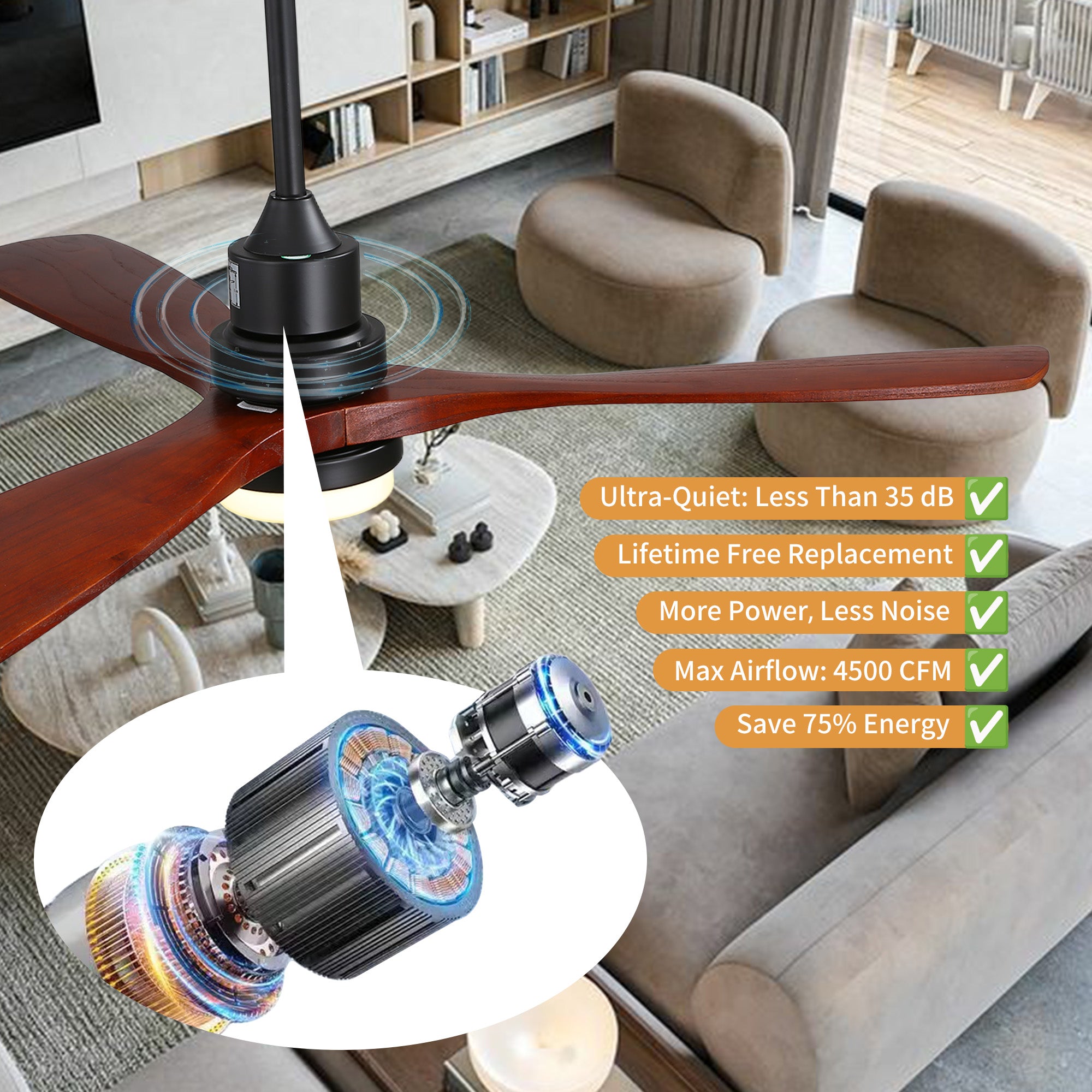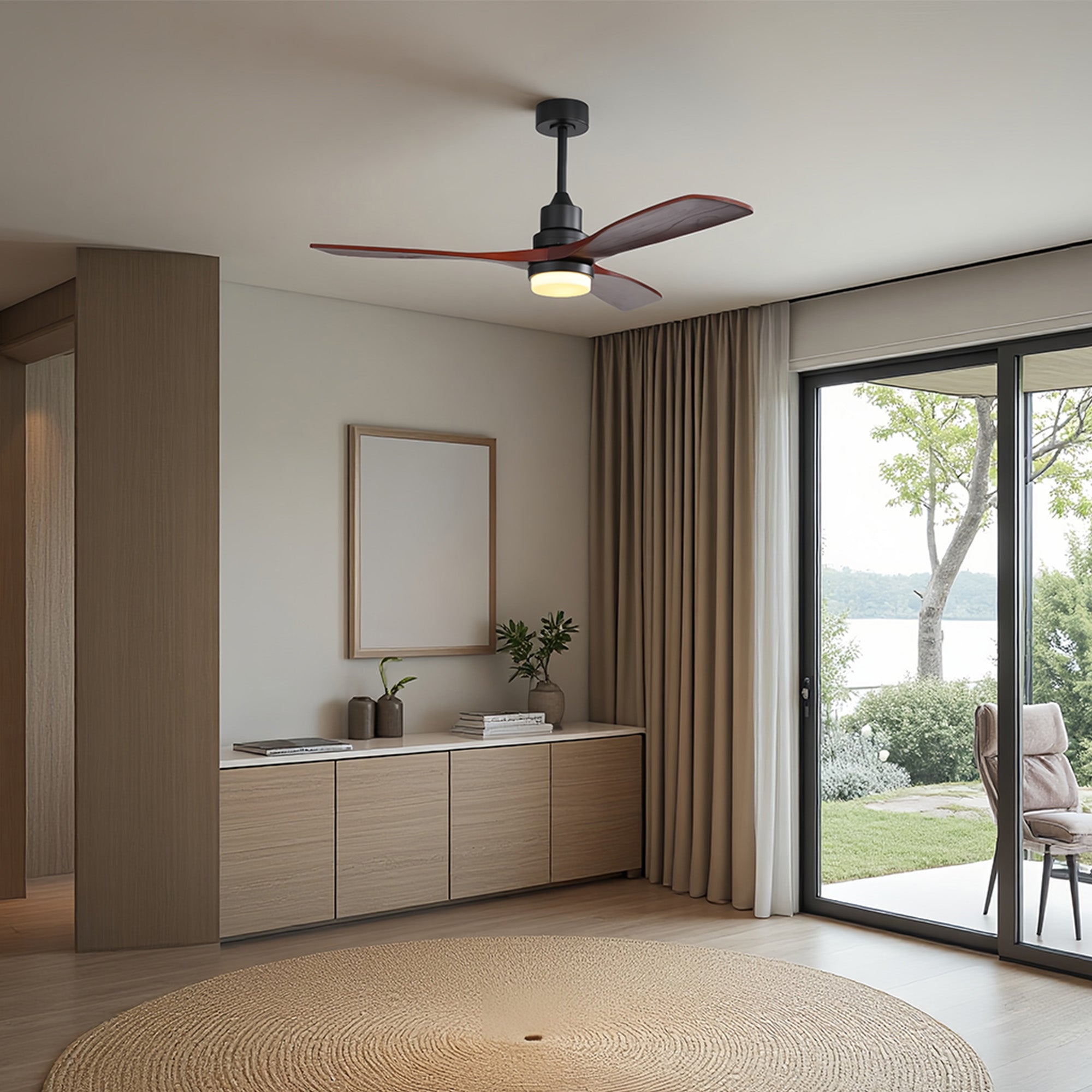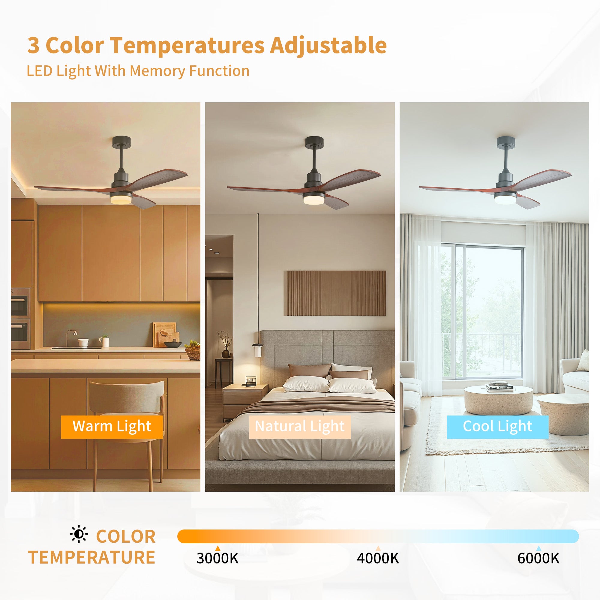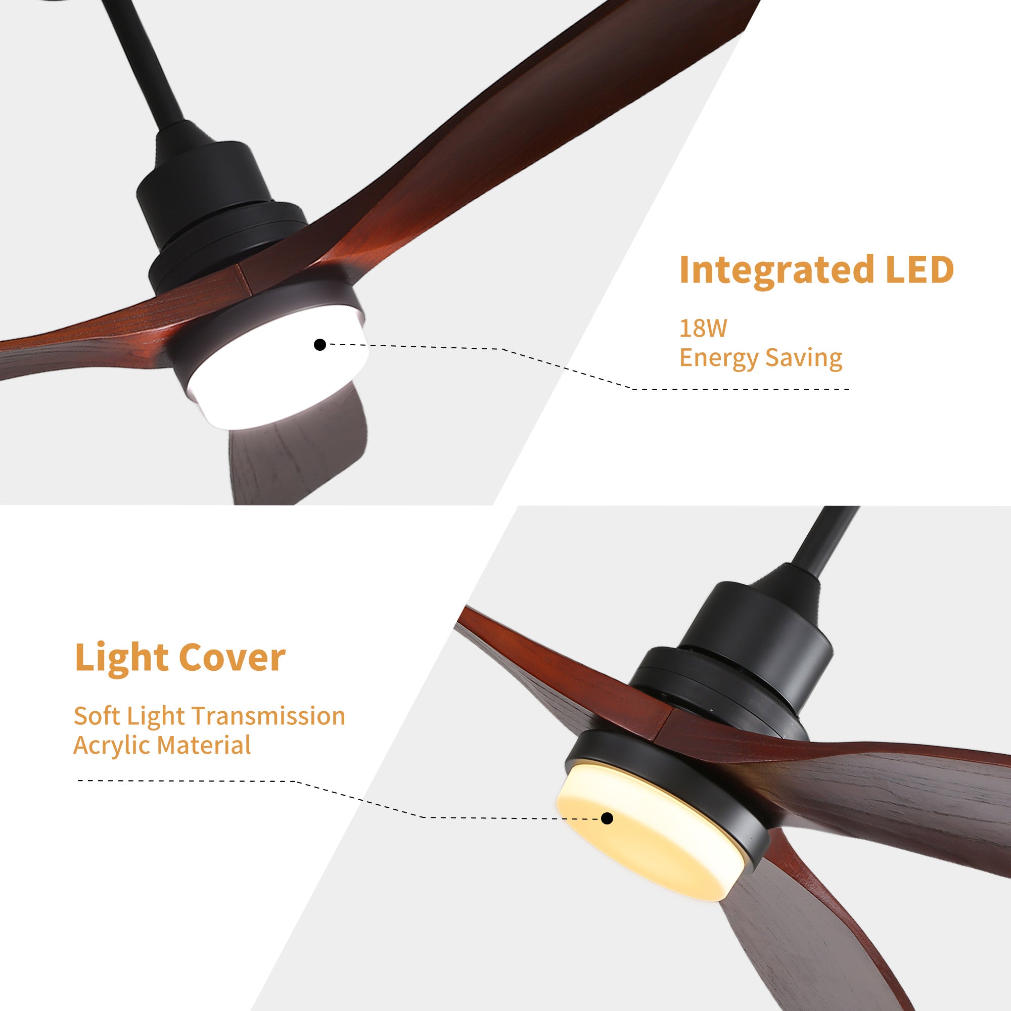This Indoor Black Ceiling Fan with Light Refresh your living space, whether indoor or outdoor, this summer, with the AuraVista Collection 52 in. Natural Matte Black ceiling fan with light from Modern Habitat. The 3 natural brown wood blades feature a modern farmhouse style with a quiet DC motor that provides 6 adjustable speeds and timer settings with remote control. lt comes with dual-mount hardware and 3 downrod sizes (5, 10, and 24 in) to fit spaces from 200-400 sq. ft., from living rooms and kitchens to home office bedrooms, accommodating various ceiling heights from close-mount to high ceiling. The mounting options also allow installation on angled ceilings. The fan features easy-install Quiet Motor technology with reversible direction for seasonal use, auaranteein a minimal noise. Our warranty policy is a 2-year warranty for accessories.