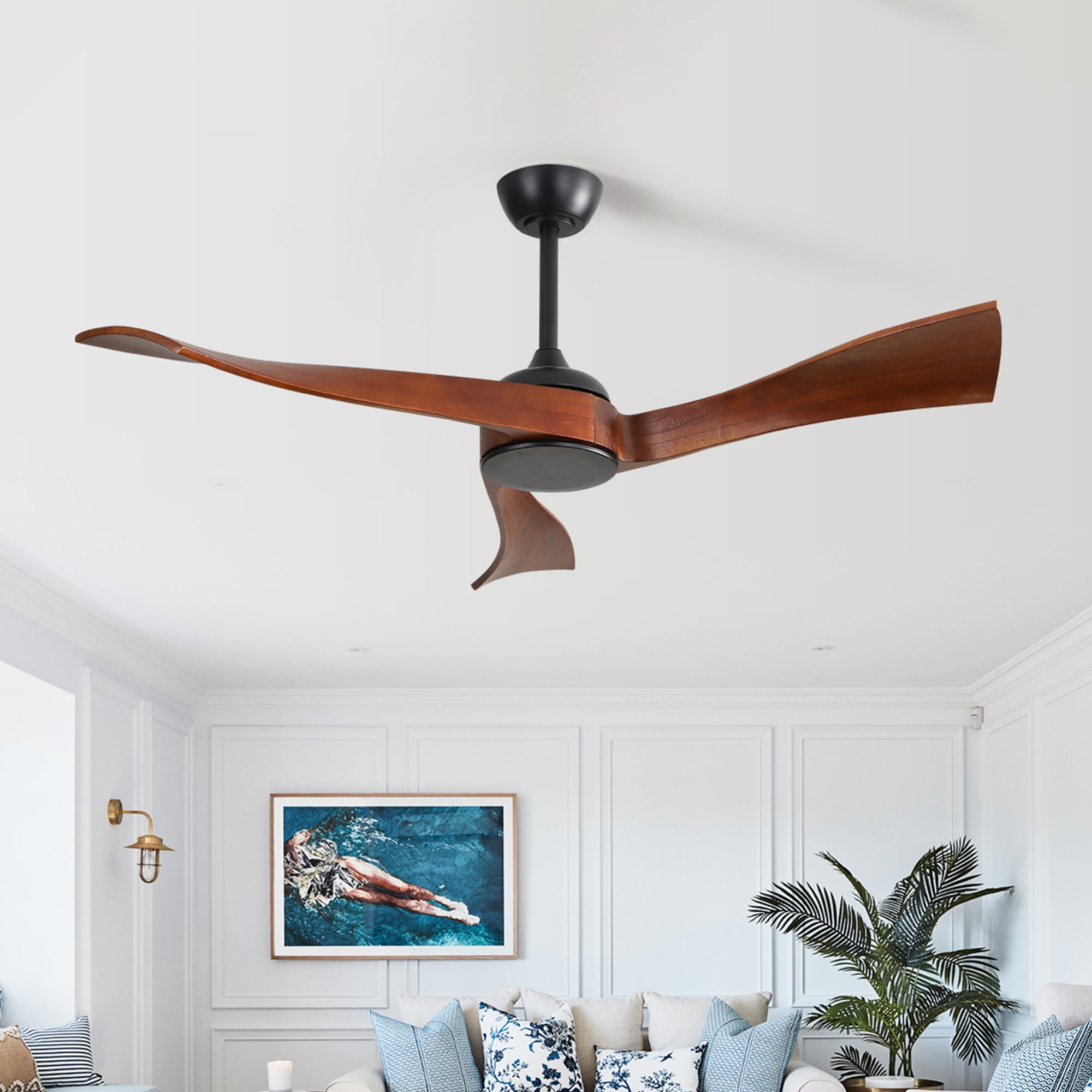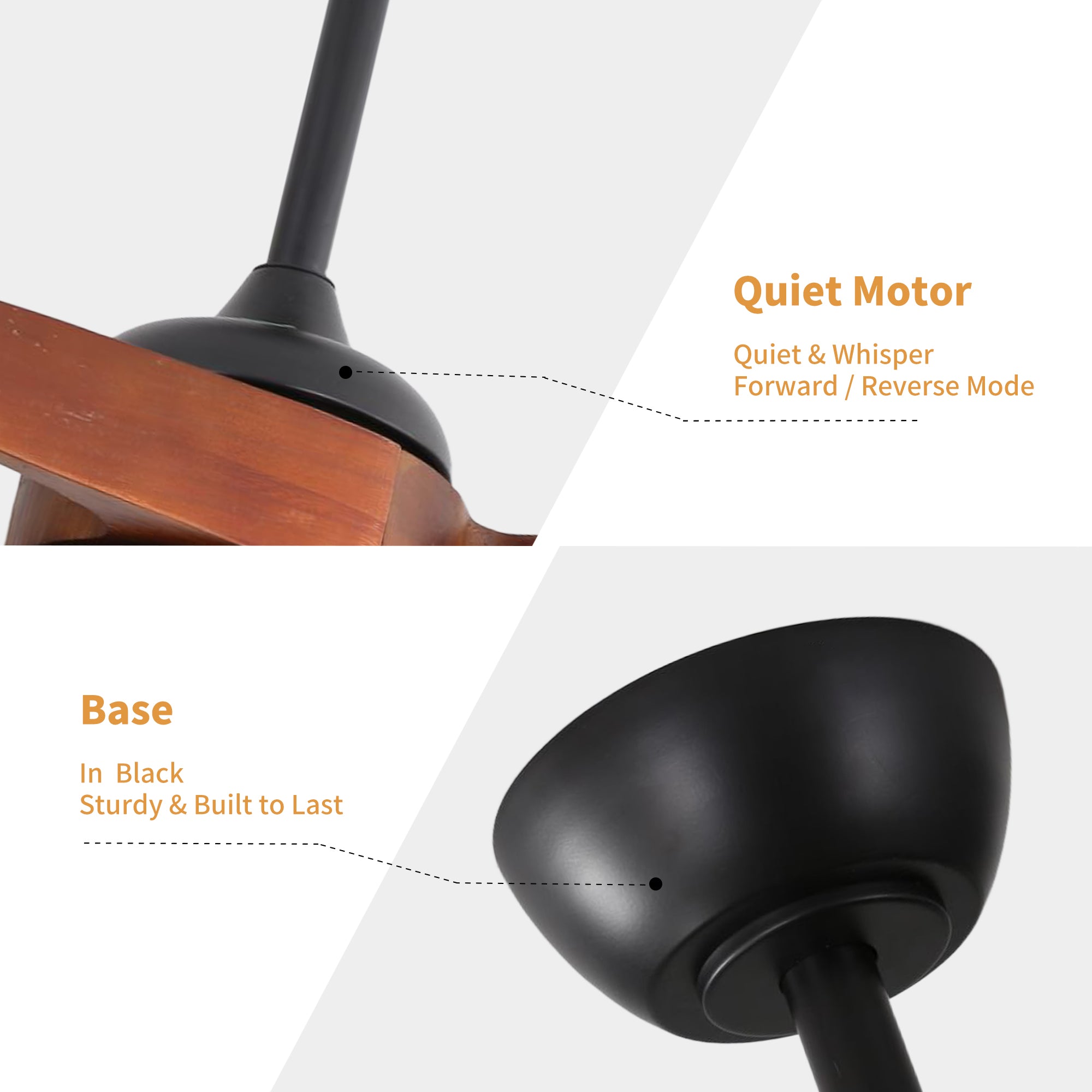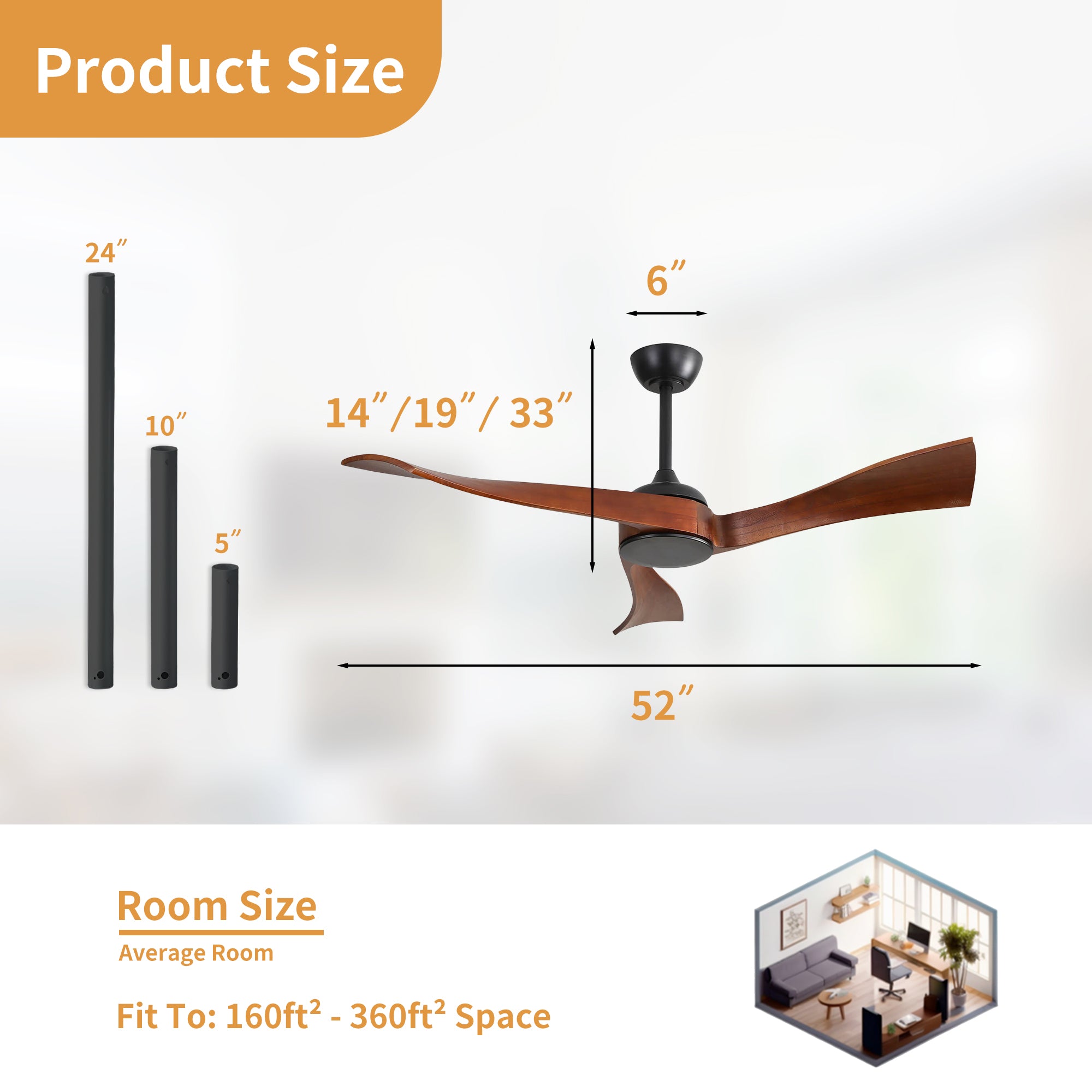 52 in. Indoor Downrod Mount Walnut Solid Wood Blades Standard Ceiling Fan with Remote 6-Speed, DC Motor Reversible