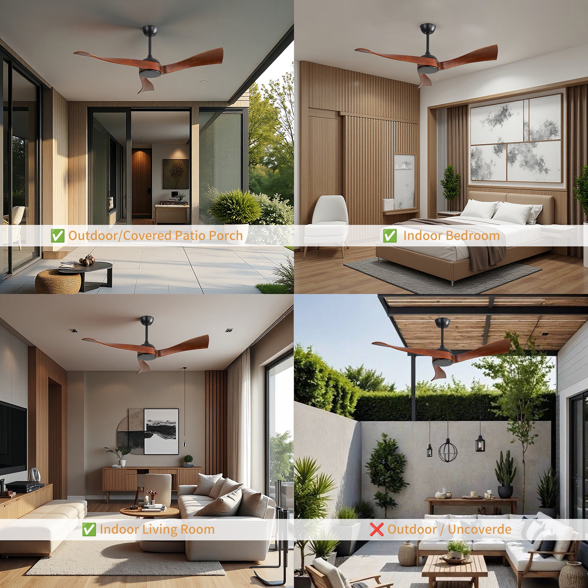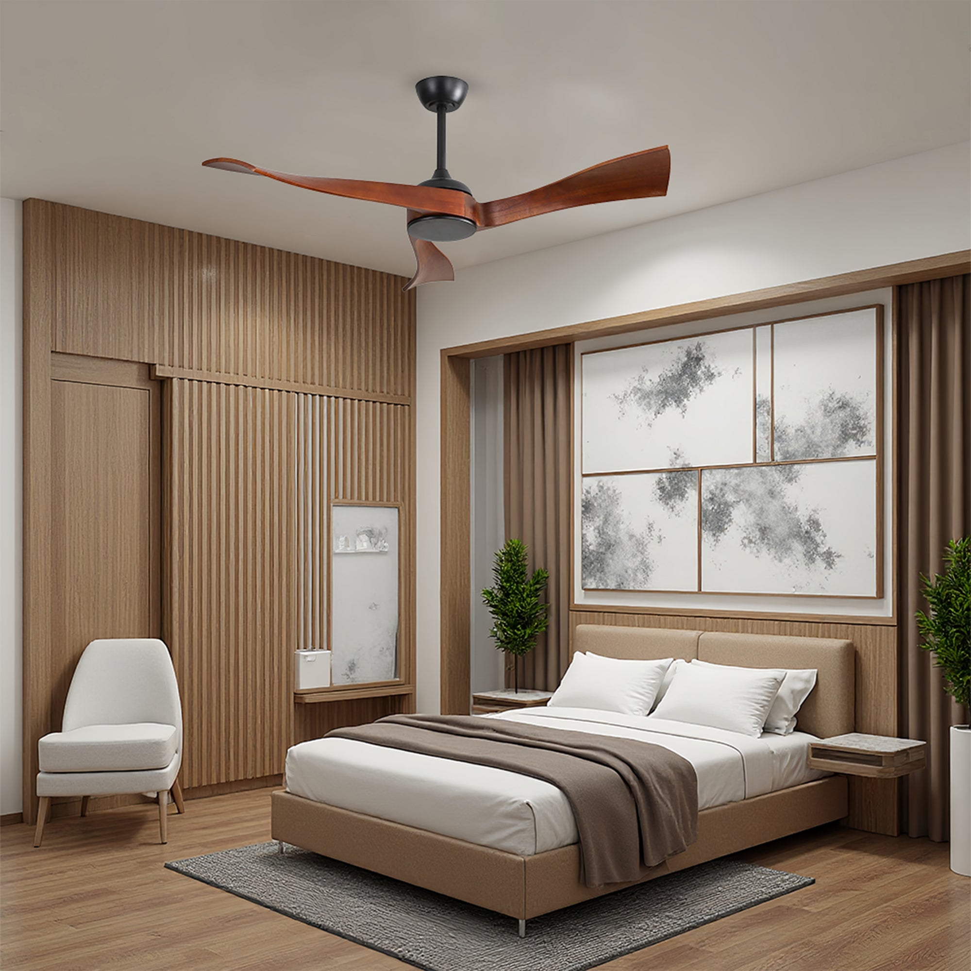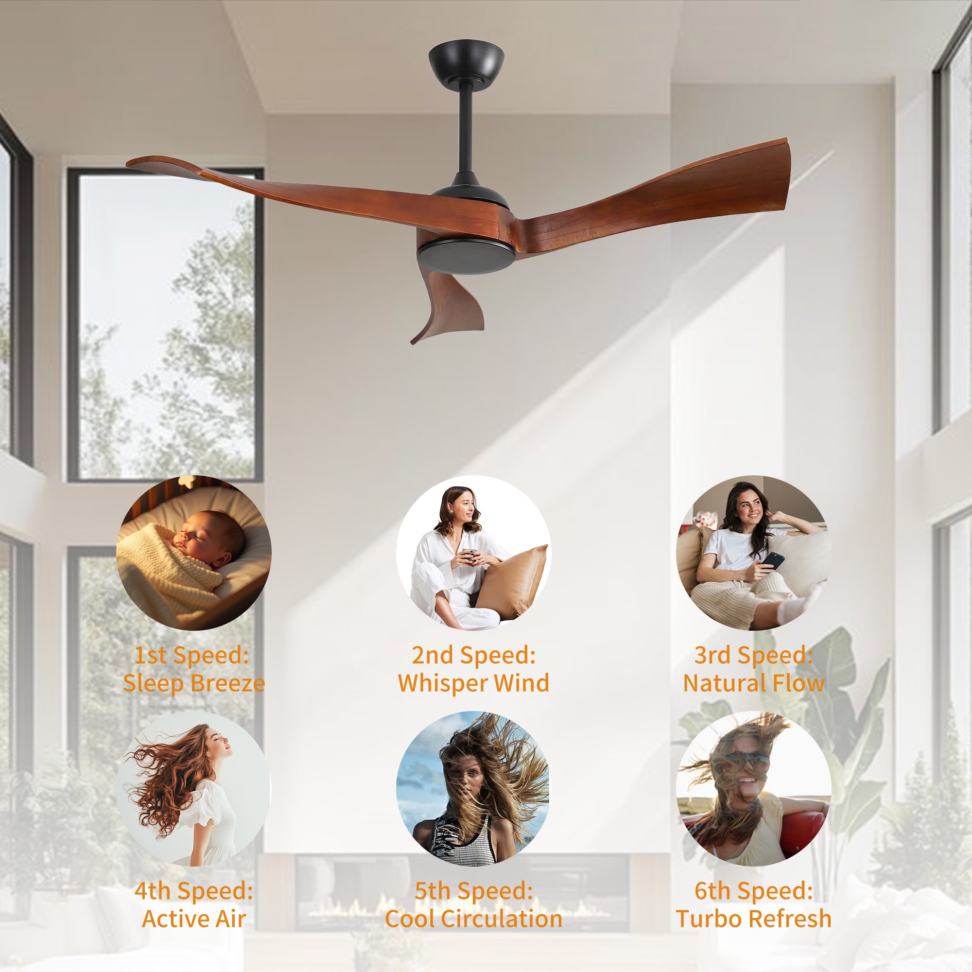 52 in. Indoor Downrod Mount Walnut Solid Wood Blades Standard Ceiling Fan with Remote 6-Speed, DC Motor Reversible