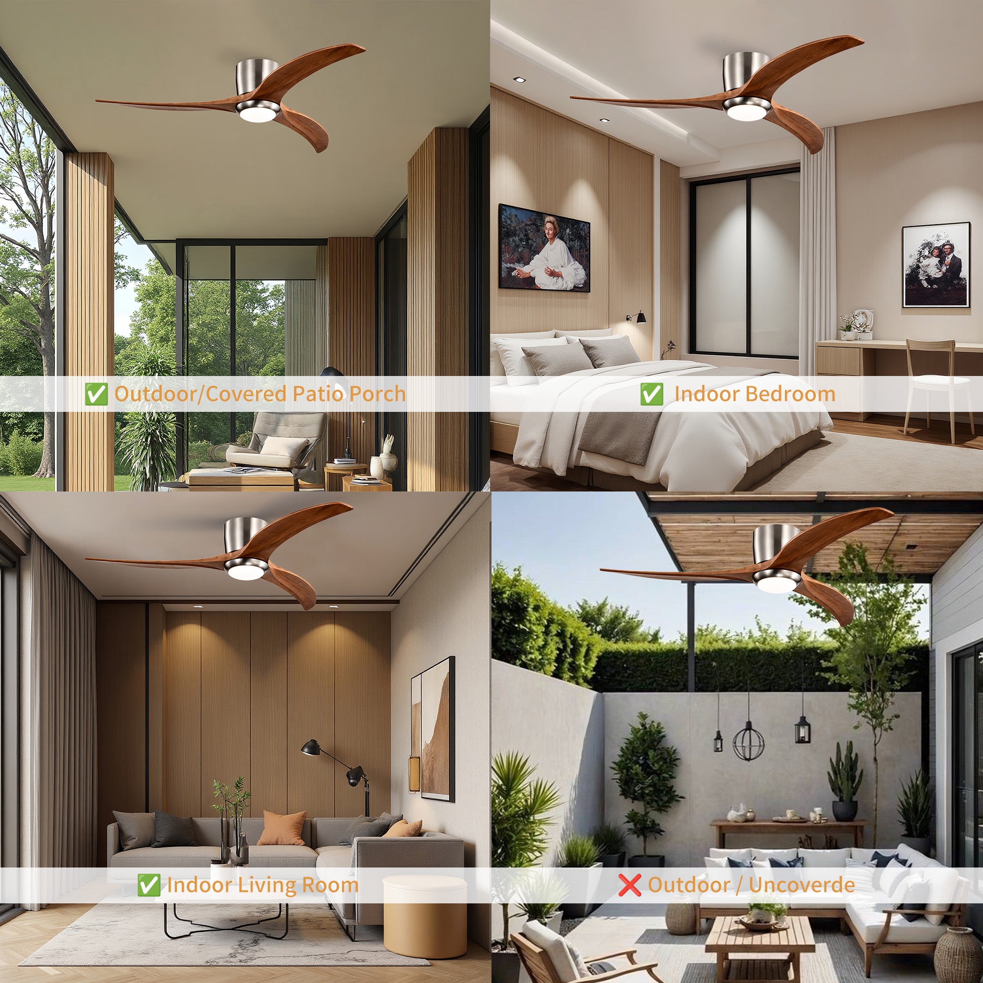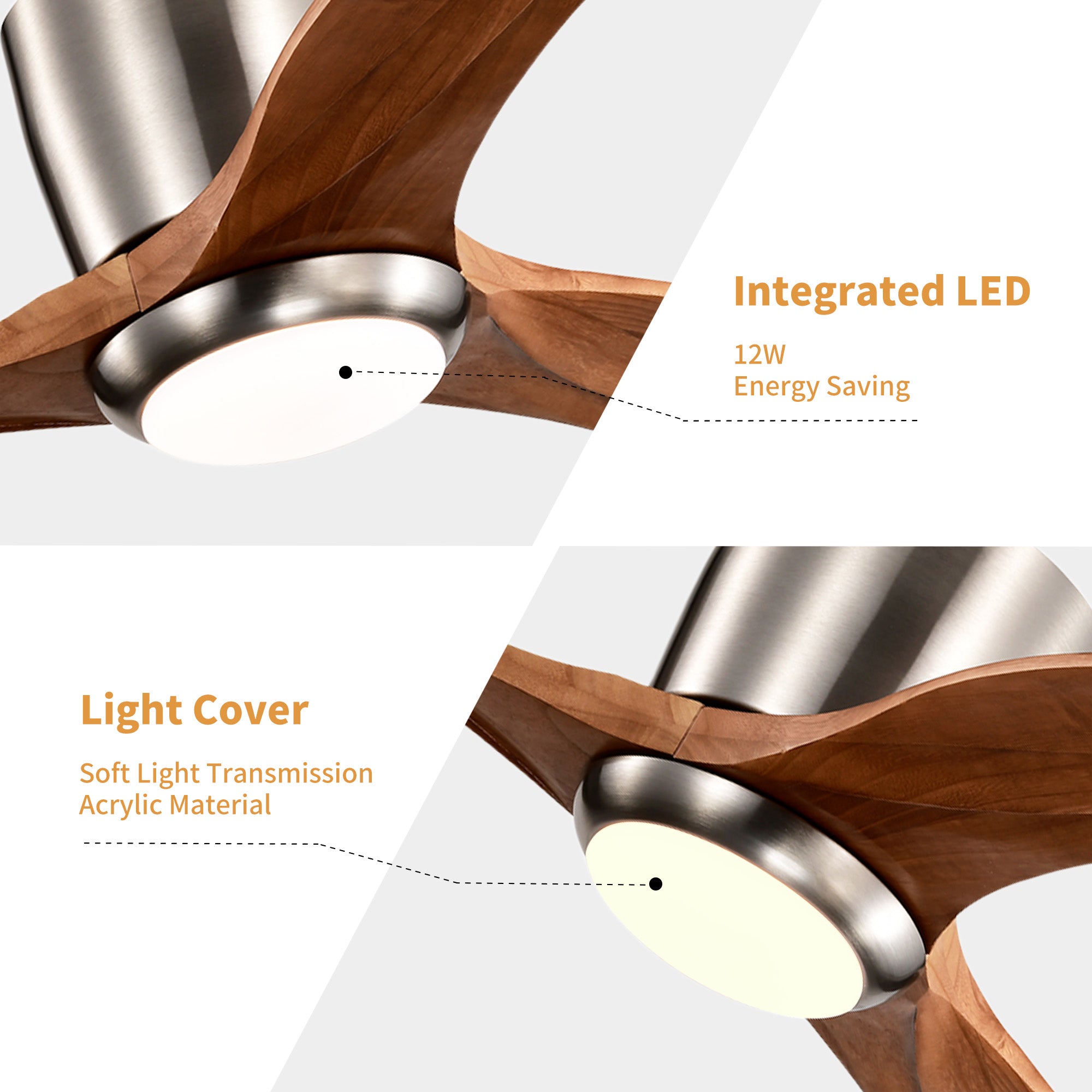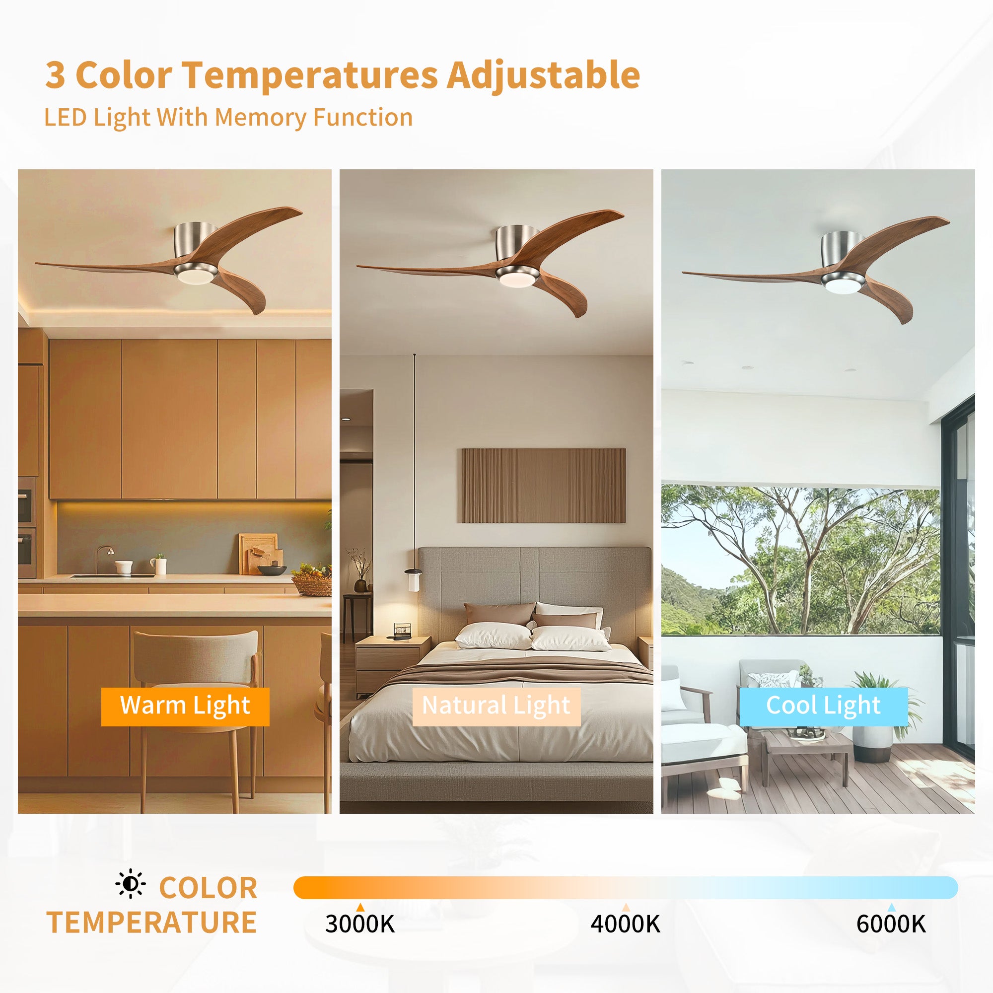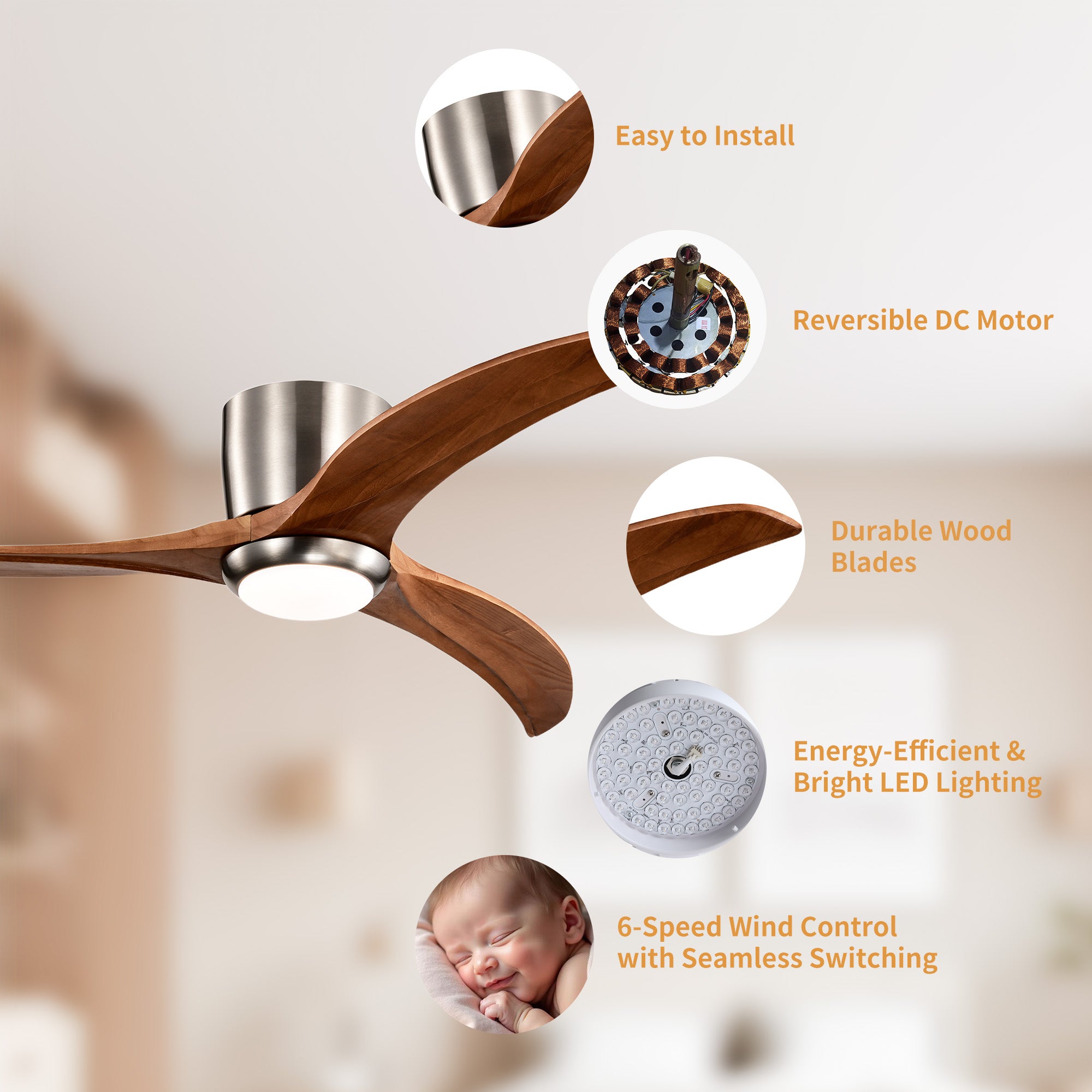 Enjoy your summer with the BladeSpan 52 in. Natural Brushed Nickel ceiling fan with light-a quiet, flush-mount design from Modern Habitat Inc. The Three blades feature a modern farmhouse style with a quiet DC motor that provides six adjustable speeds and two timer settings with remote control. With a 9.2 in. height and 7.48 in. footprint, it provides ample airflow for spaces between 200-400 square feet, perfect for living rooms, kitchens, and home office bedrooms-ideal for compact spaces. The fan features easy-install Quiet Motor technology with two airflow modes, quaranteeing minimal noise.