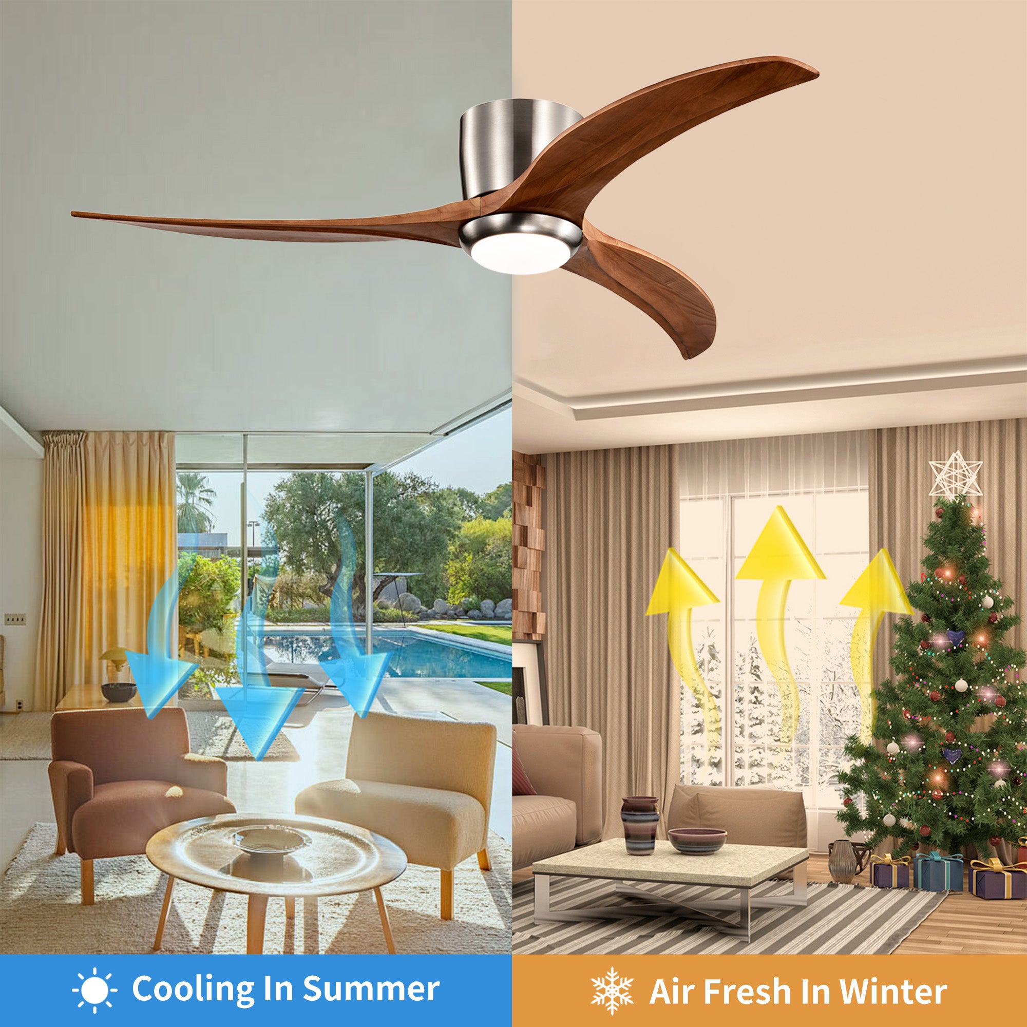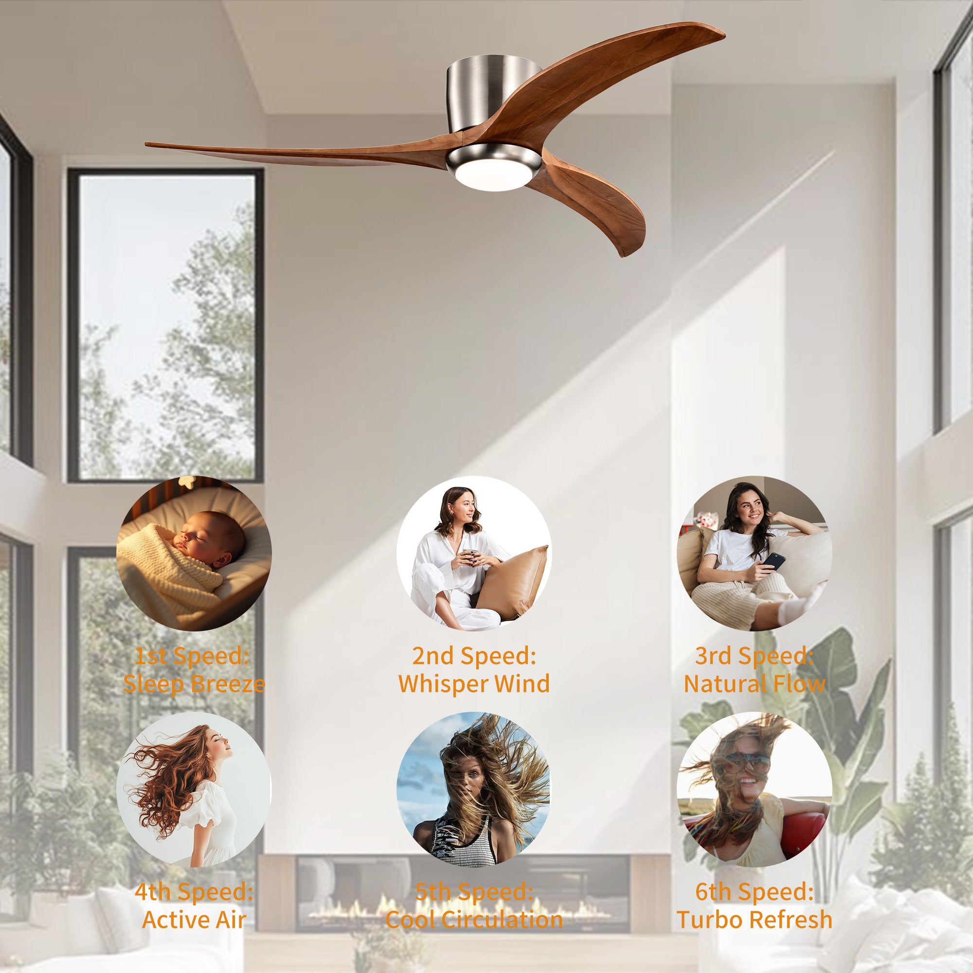 52 in. Integrated LED Indoor Flush Mount Brushed Nickel/Walnut Standard Ceiling Fan with Light and Remote 6-Speed