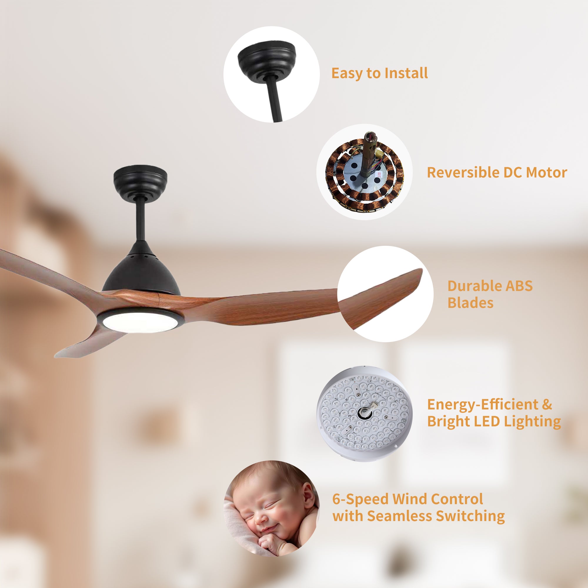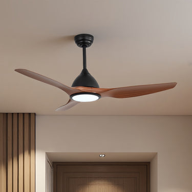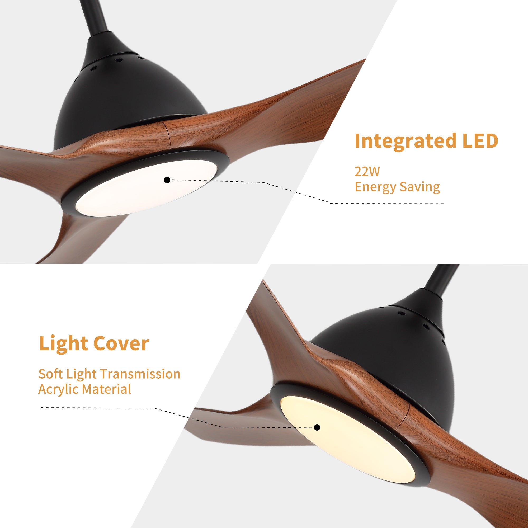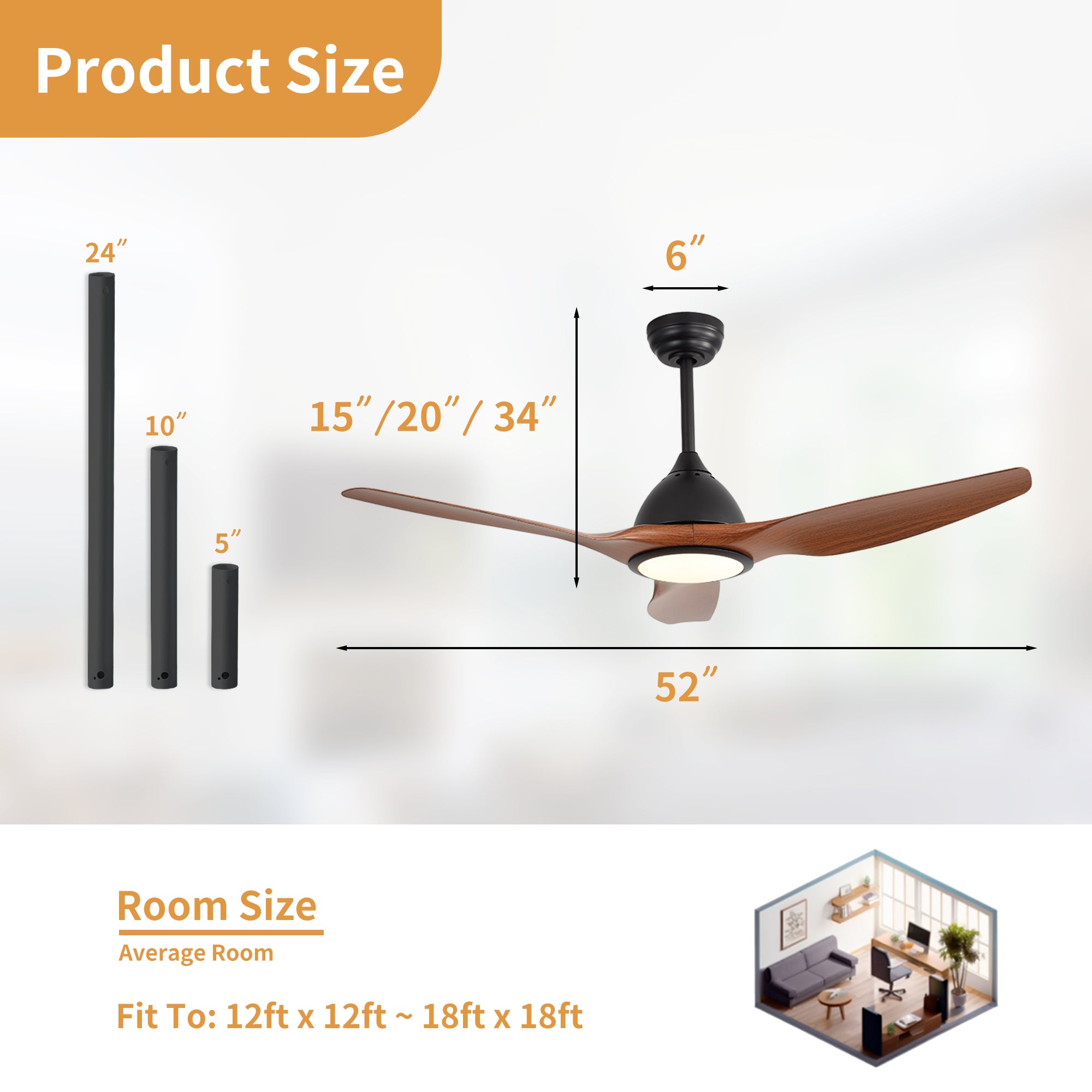 52 in. Integrated LED Indoor Downrod Mount Black/Walnut Standard Ceiling Fan with Dimmable Light and Remote 6-Speed
