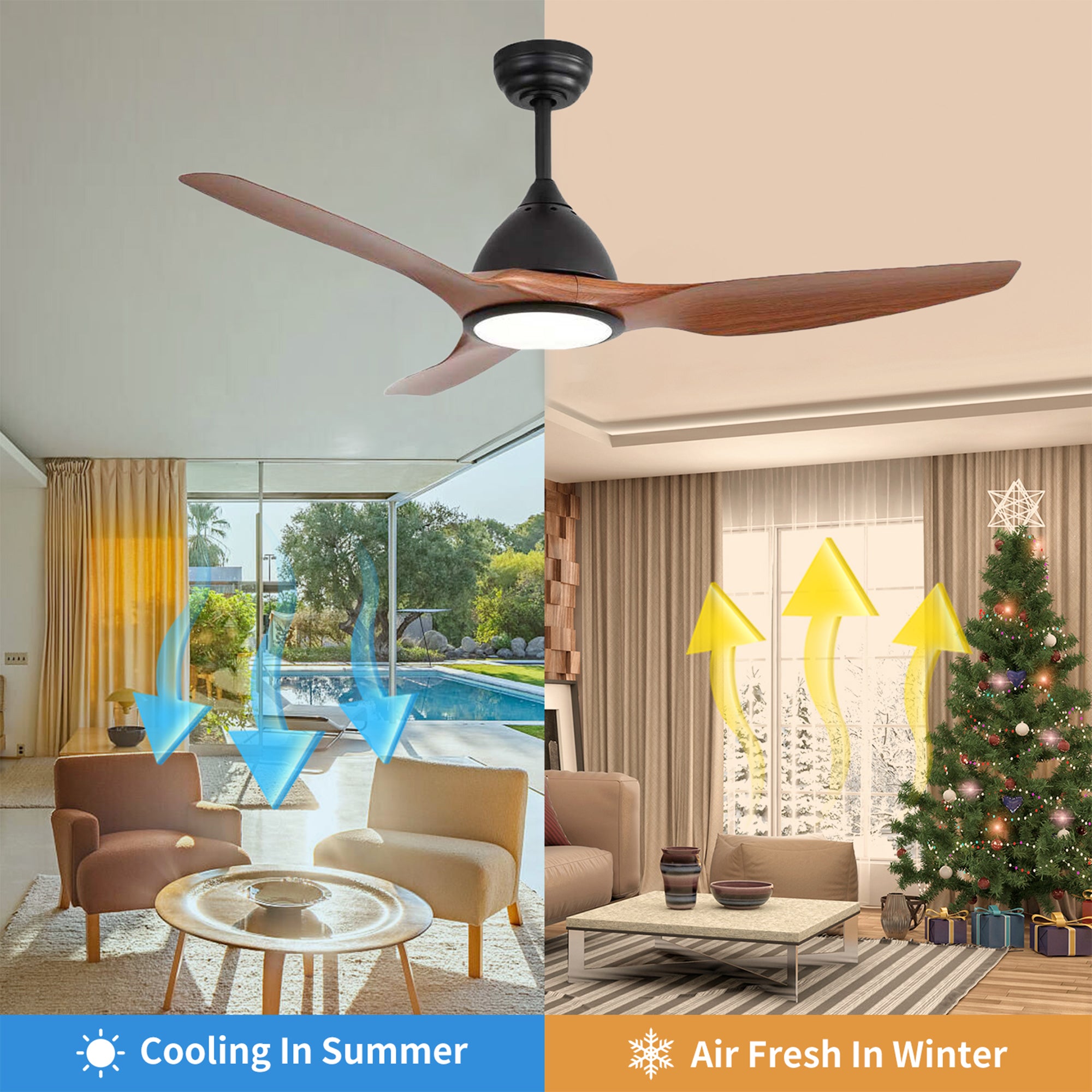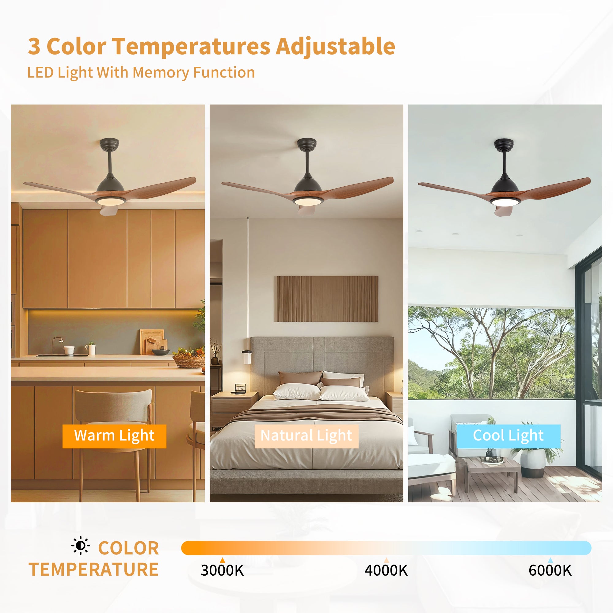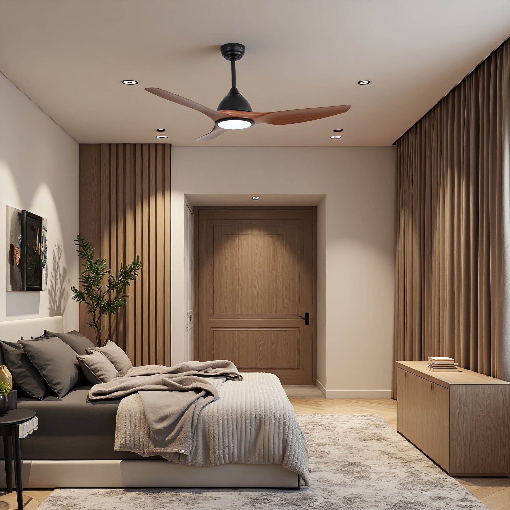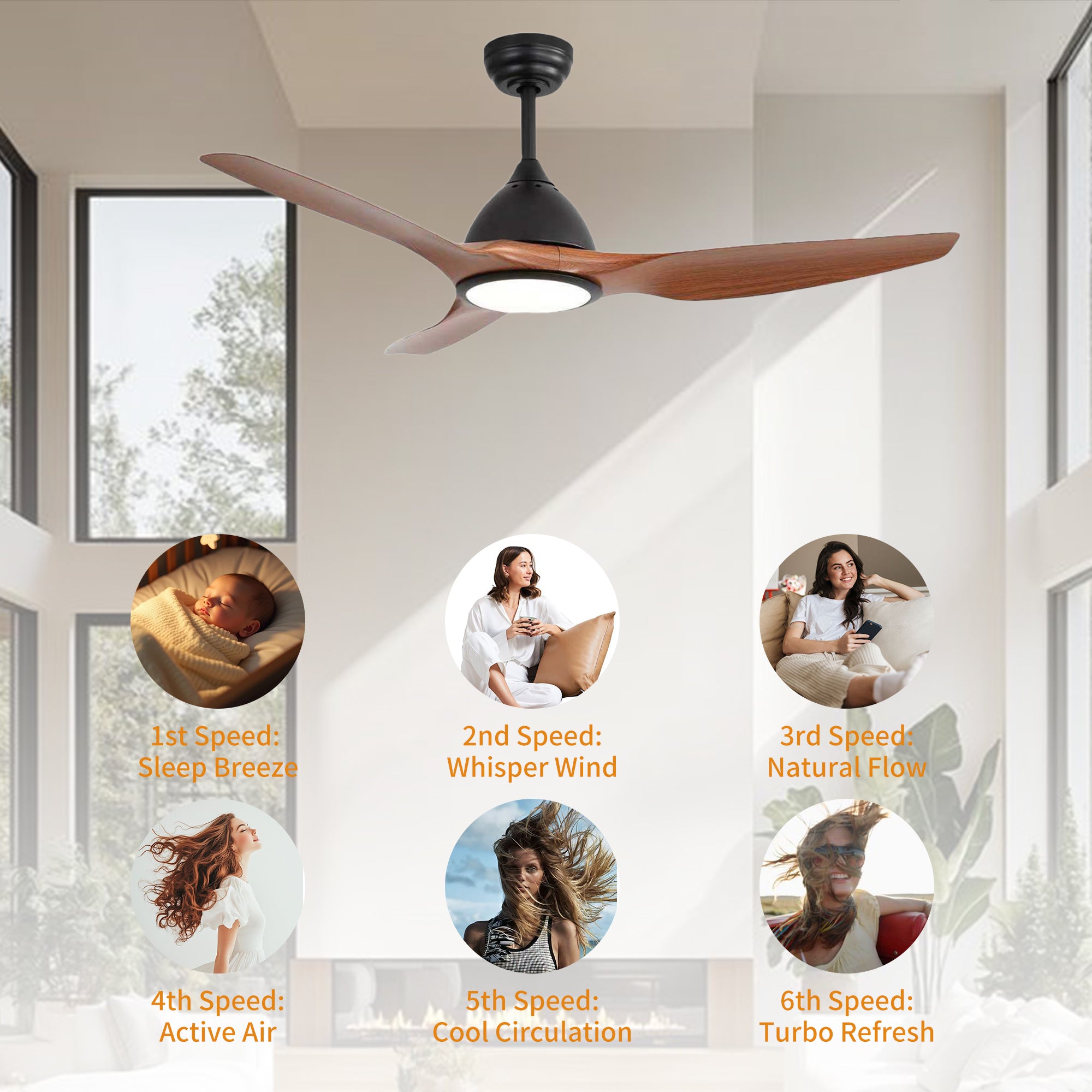 52 in. Integrated LED Indoor Downrod Mount Black/Walnut Standard Ceiling Fan with Dimmable Light and Remote 6-Speed