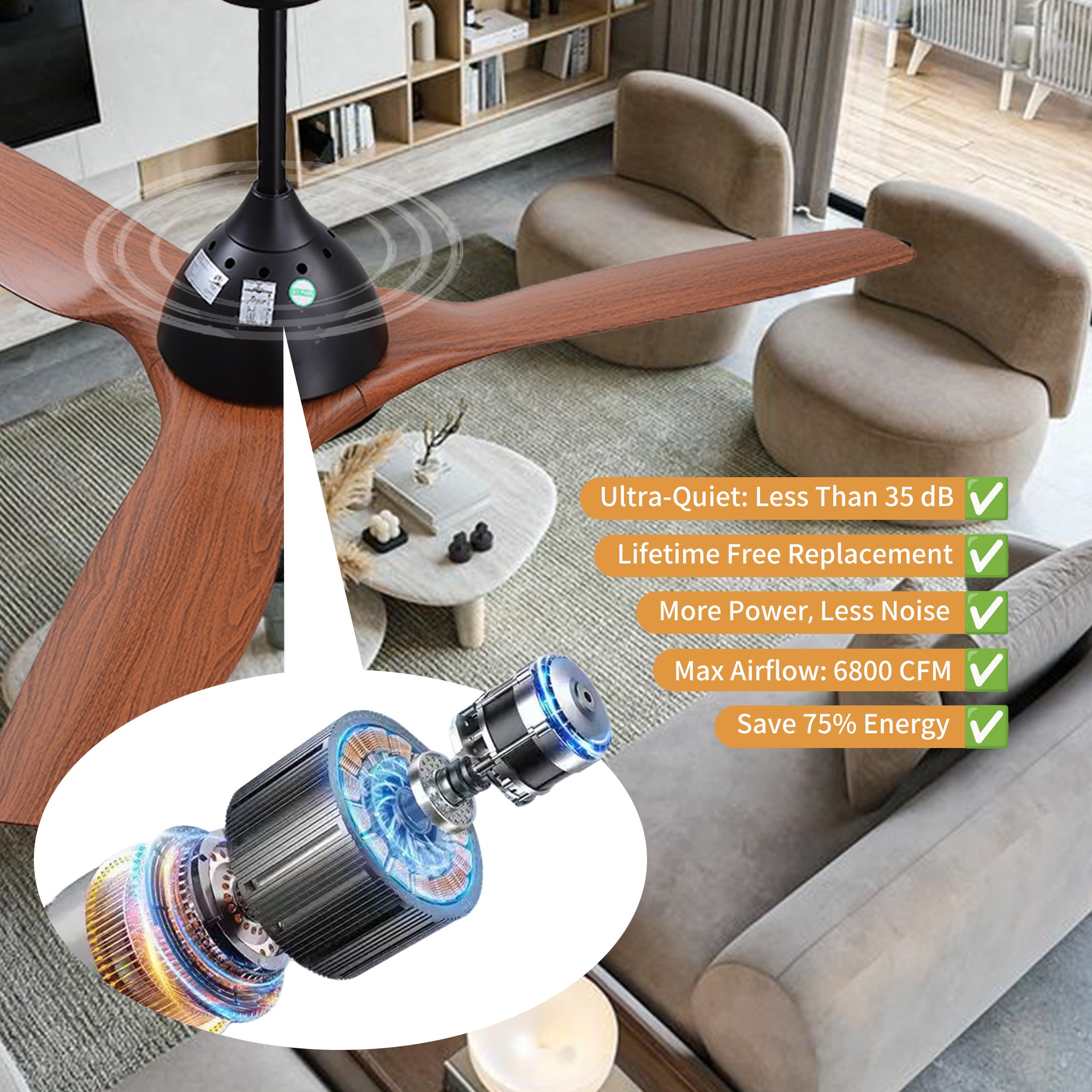 - 52 in. ceiling fan with natural black blades and modern matte black housing finish.