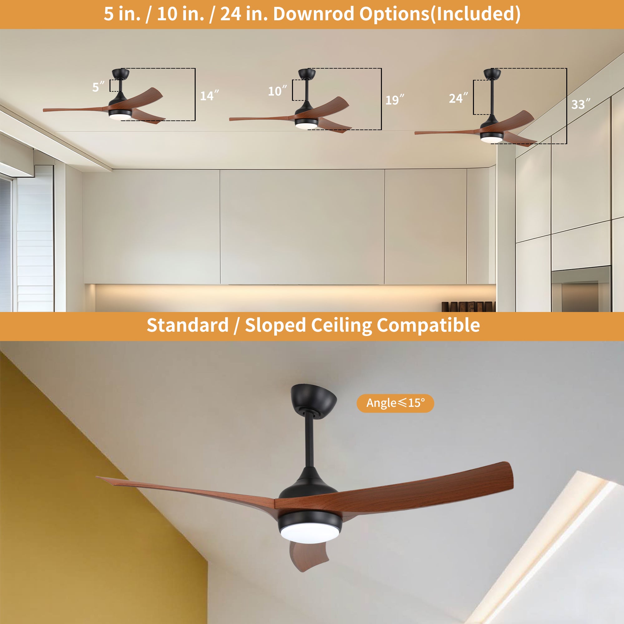 - 3 downrod options (5,10, 24 in) for rooms 200-400 square feet with up to 15-degree angled ceilings.
