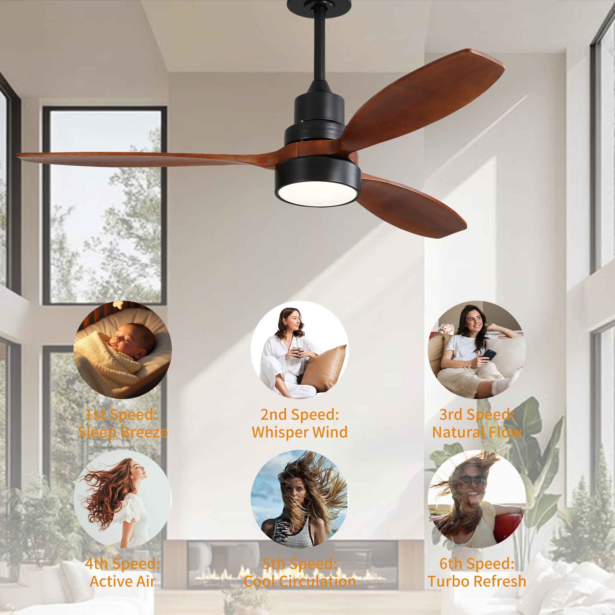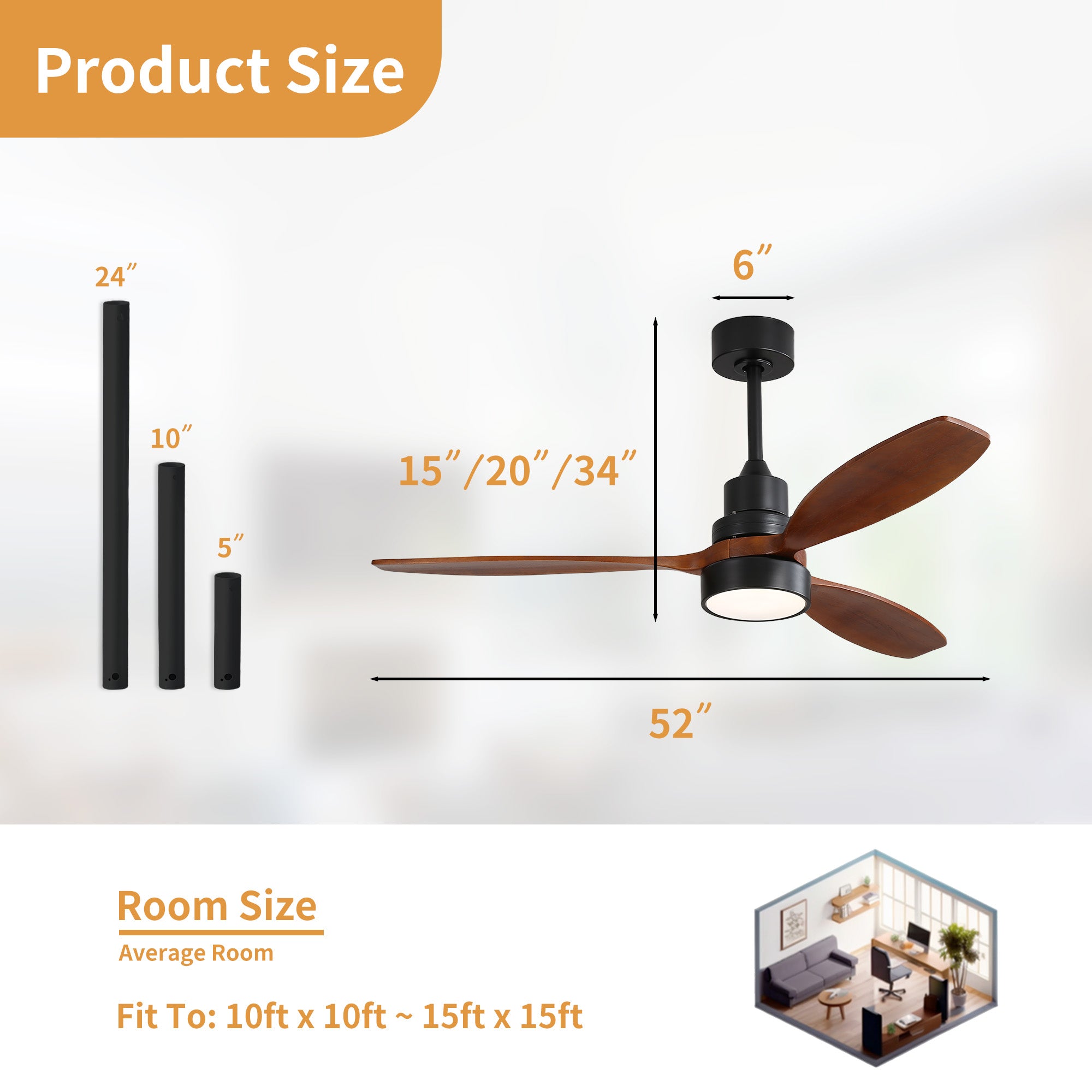 Stay warm and comfortable all winter with the 52 in. Matte Black Metal ceiling fan with light from Modern Habitat. Featuring three Solid Wood blades with a reverse function that provides a winter ceiling fan setting mode, and comes with a remote control. The minimal design fits interiors that present both traditional and modern American lifestyles. The fan features easy-install Quiet Motor technology with three airflow modes, guaranteeing minimal noise. A quiet DC motor provides six adjustable speeds and three timer settings. It comes with a 5,10 and 24 in. downrod to fit spaces from 200–400 square feet — from living rooms and kitchens to home offices and bedrooms — accommodating various ceiling heights from open-mount to high ceilings. The mounting options also allow installation on angled ceilings up to 15°. Warm lighting settings come with three lighting temperature options to help improve air circulation and enhance your holiday home living experience.