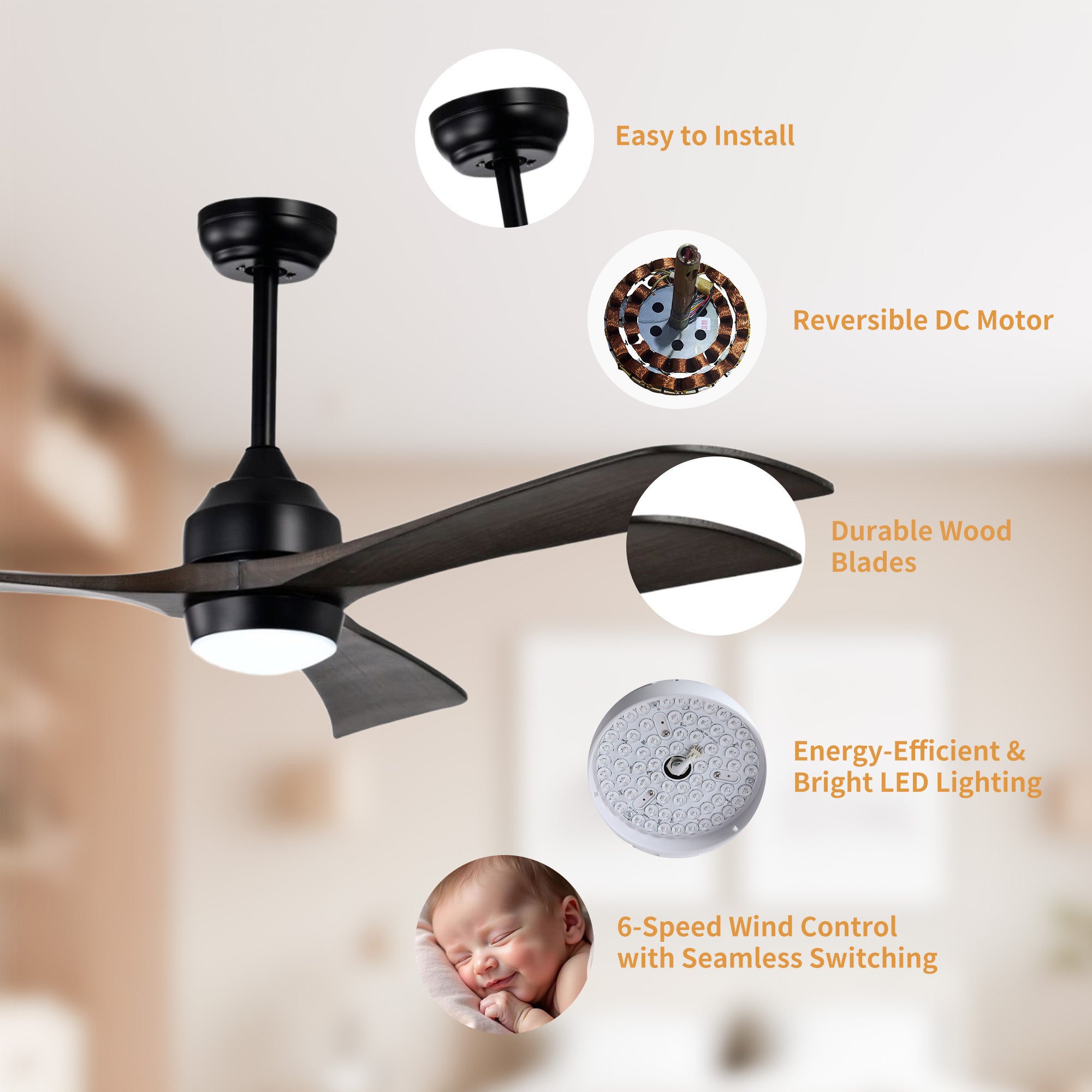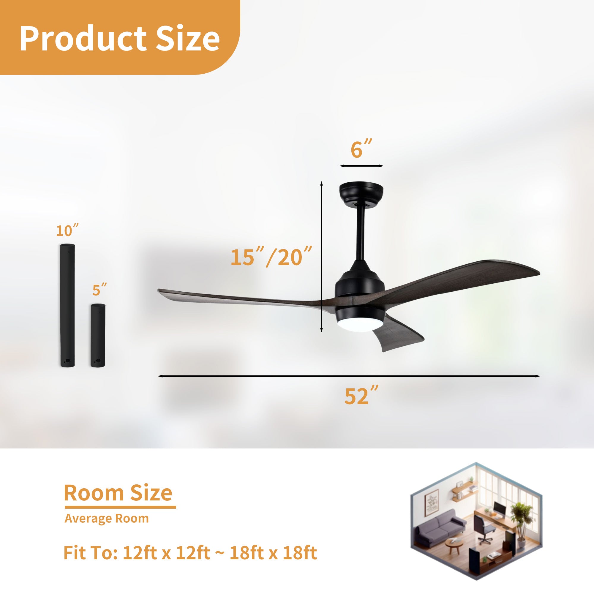 AuraVista Elegant 52 in. Indoor Black Ceiling Fan with LED and Remote Control