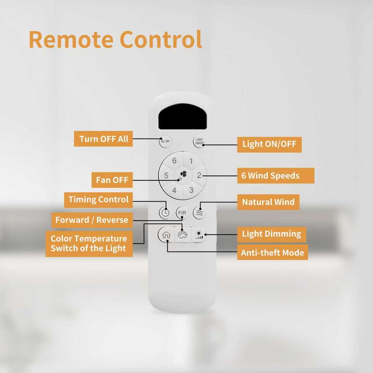 - Remote-Controlled Convenience: The 52" ceiling fan comes with a remote control, offering 6 wind speeds, timer adjustment, and reversible blade design for year-round comfort.