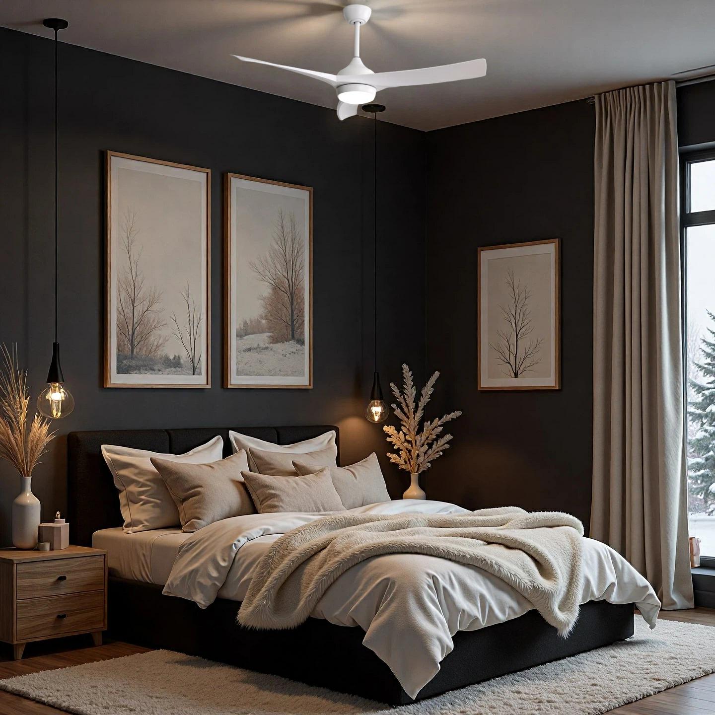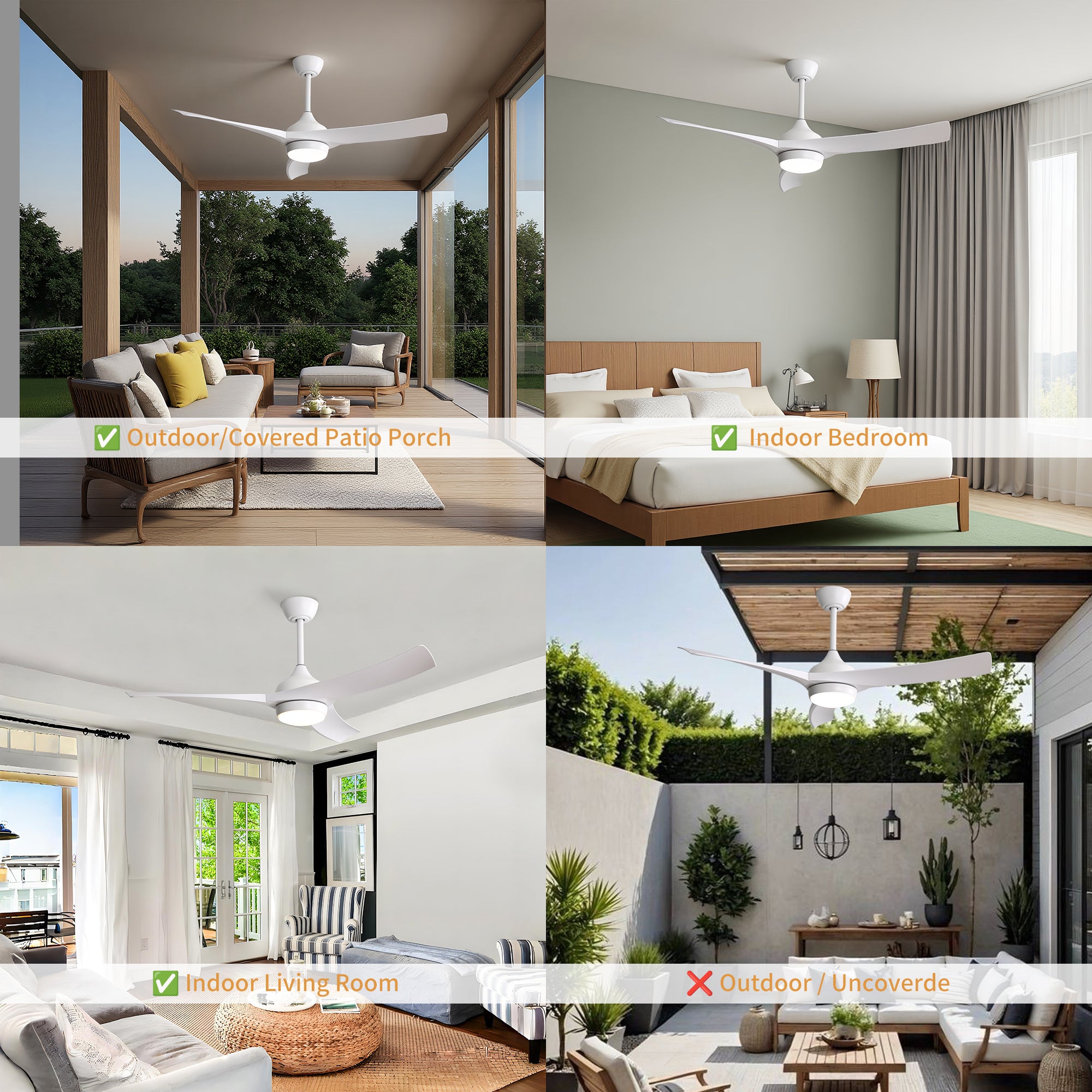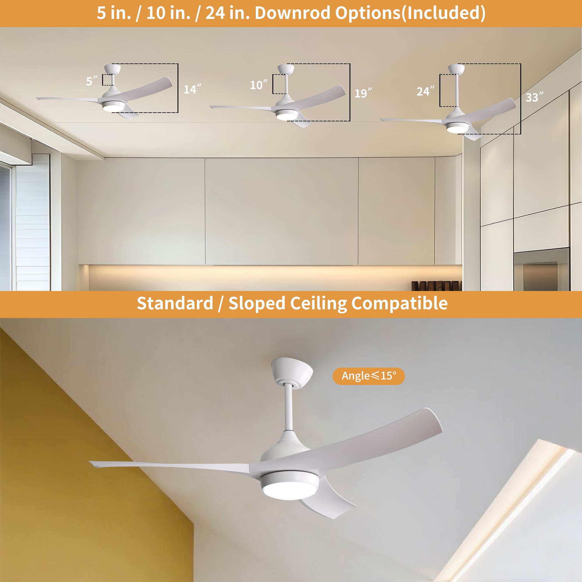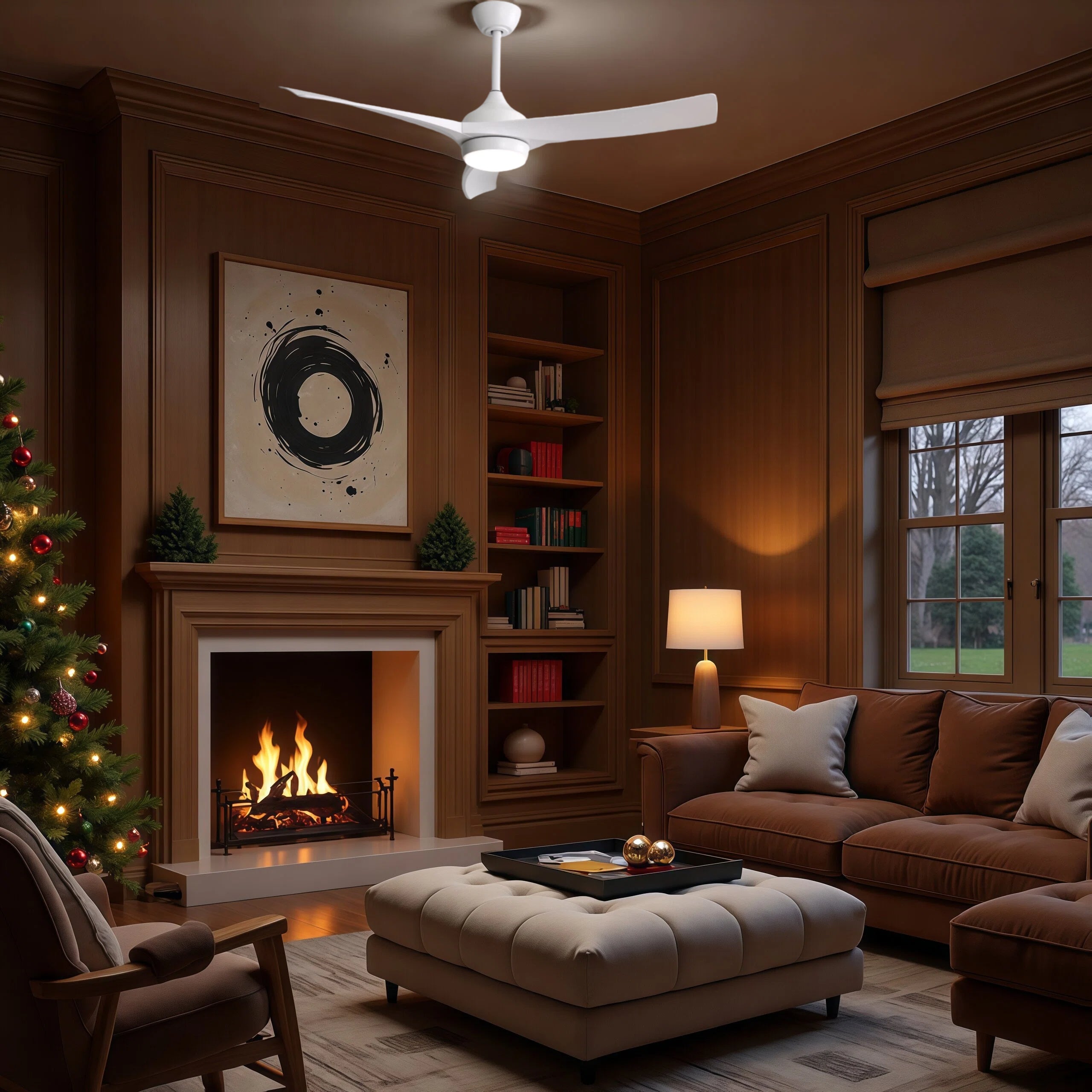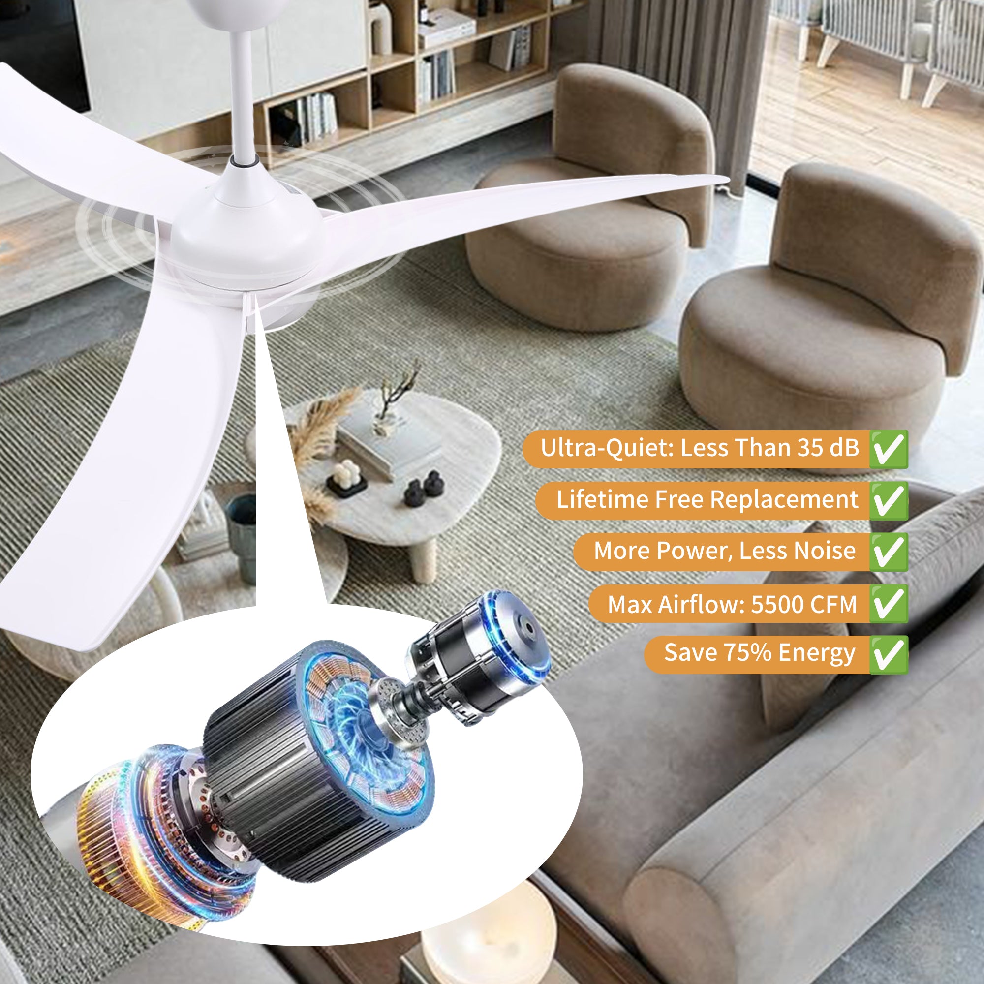 This 52 in. ceiling fan features a highly efficient DC motor, saving 65% more energy than traditional AC motors while operating quietly for a peaceful environment. Equipped with three ABS blades, it delivers powerful airflow, ensuring comfort in medium to large indoor spaces like bedrooms, living rooms, and offices, as well as covered outdoor areas. The included remote control allows easy operation with 6 wind speeds, a timer, and a reversible function for year-round use. Designed for convenience, it supports ceiling slopes up to 15° and comes partially pre-assembled for easy installation.