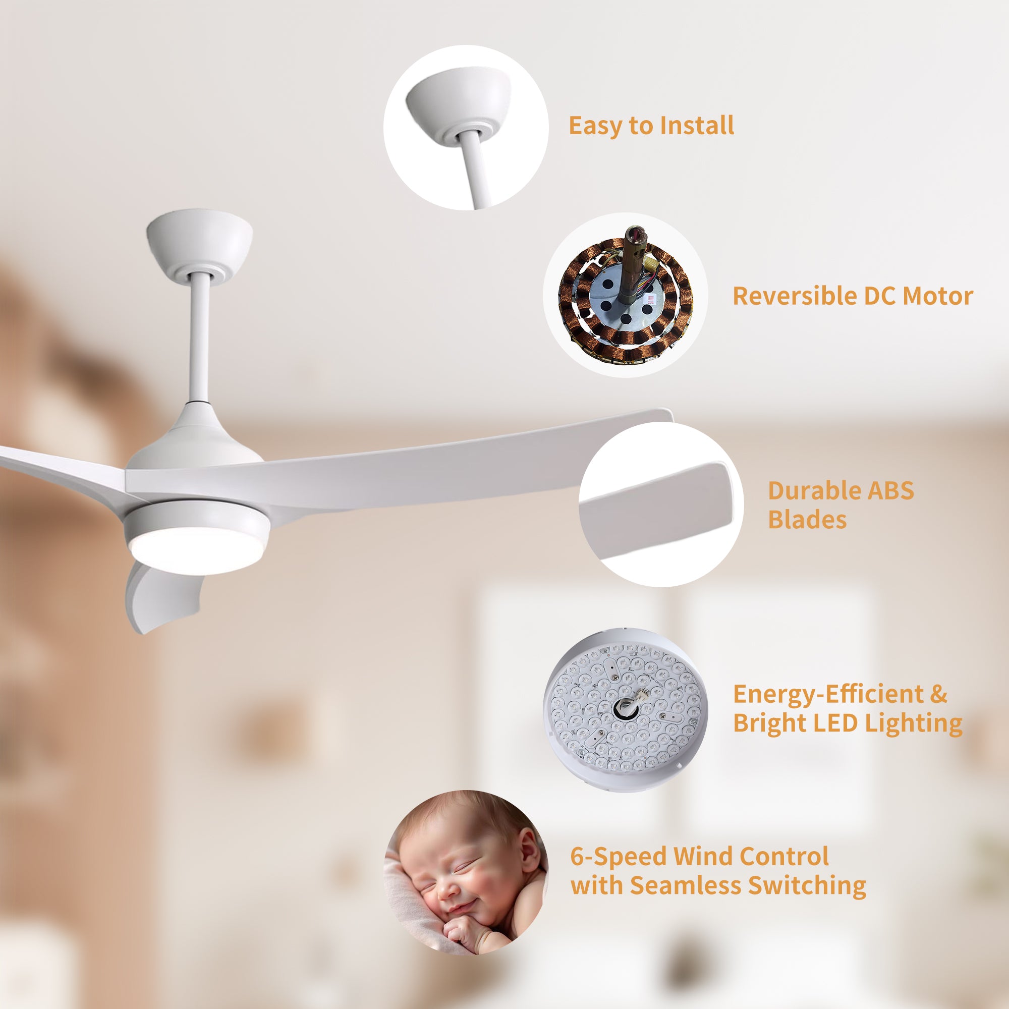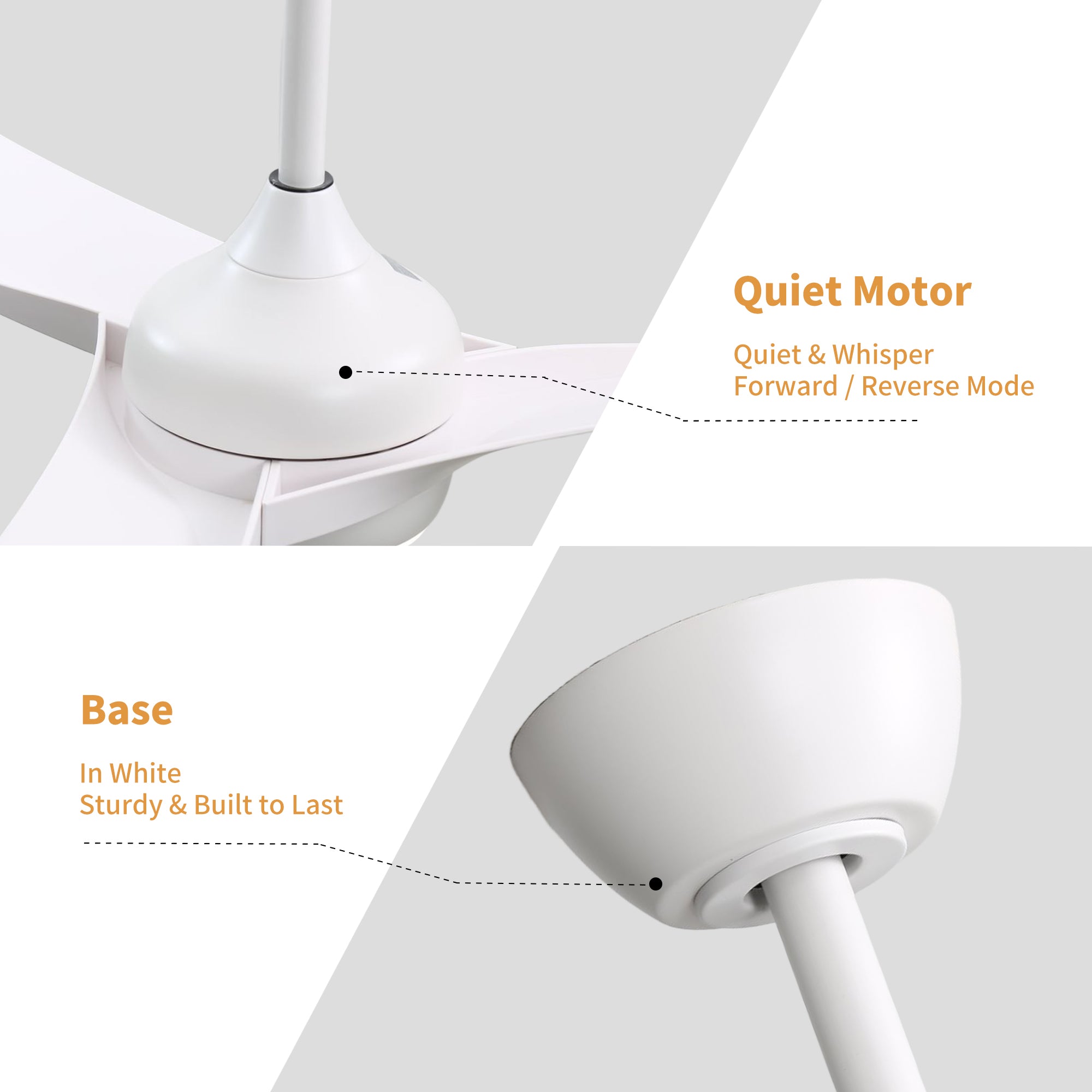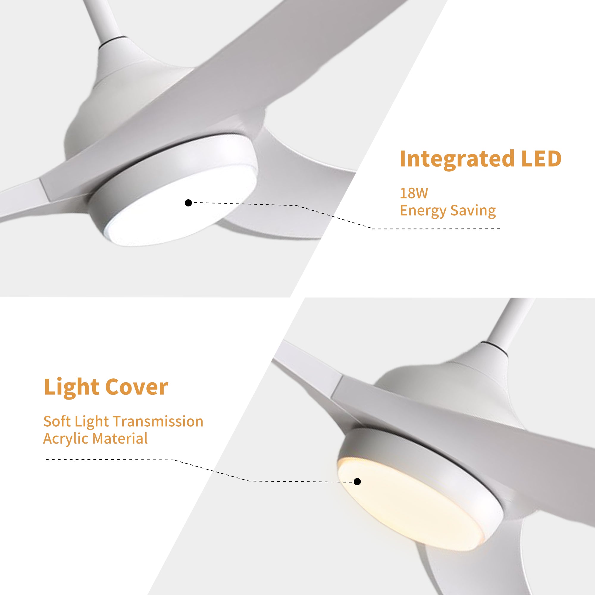 AuraVista Lite 52 in. Modern White Ceiling Fan with 18W LED Light and Remote Control 3 ABS Blades Noiseless Reversible DC Motor