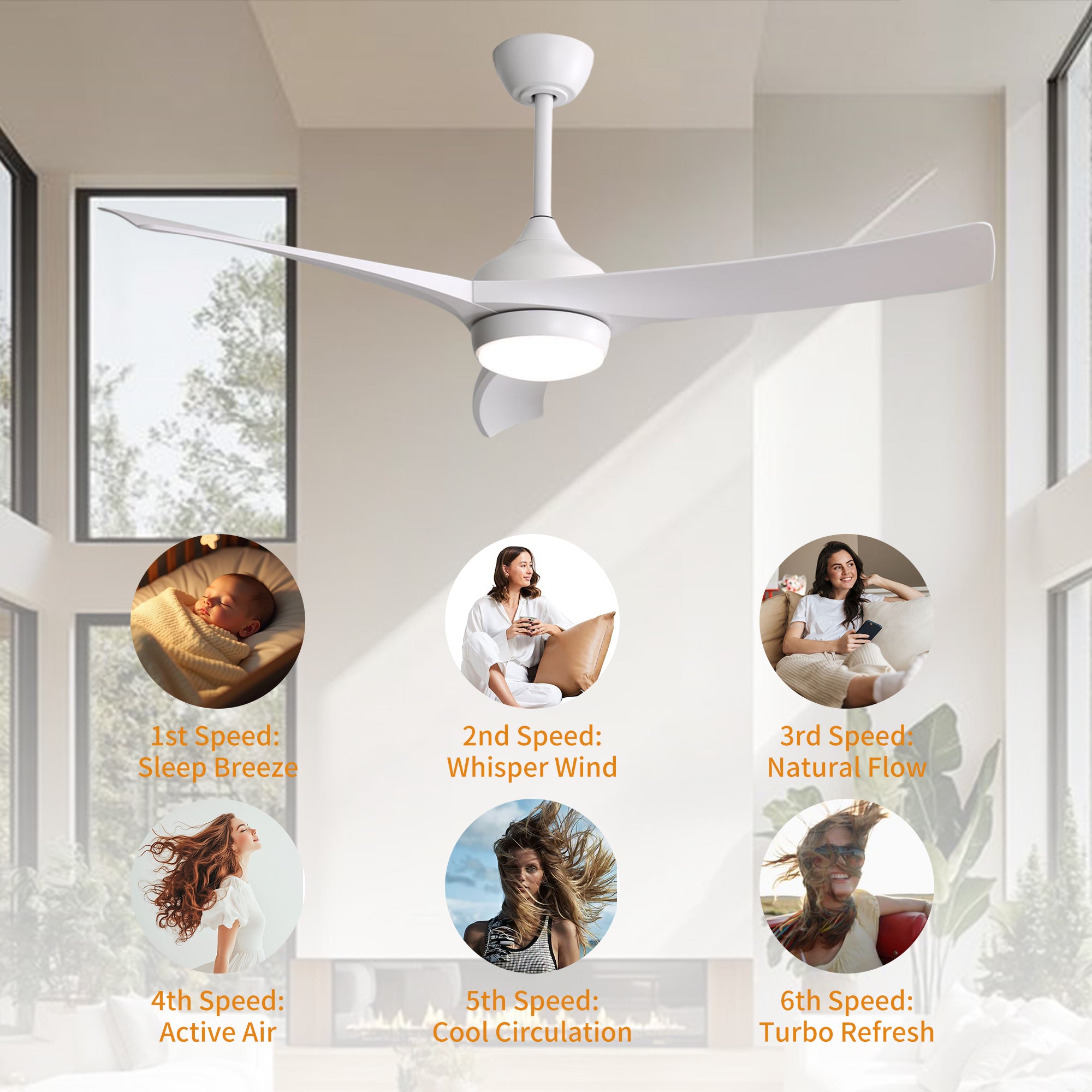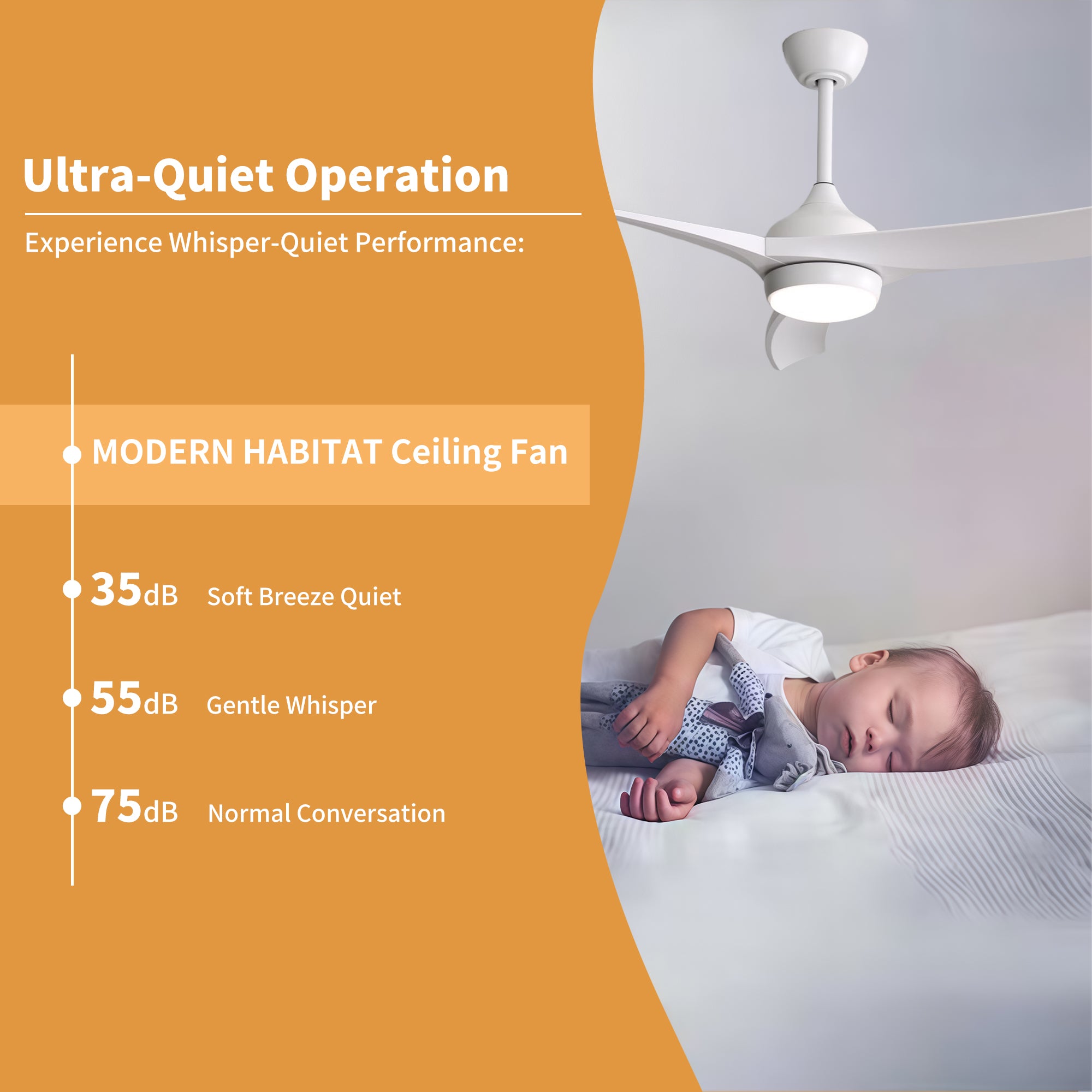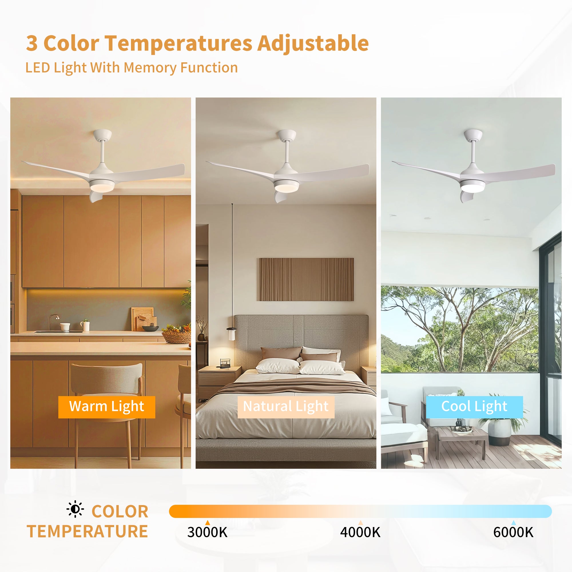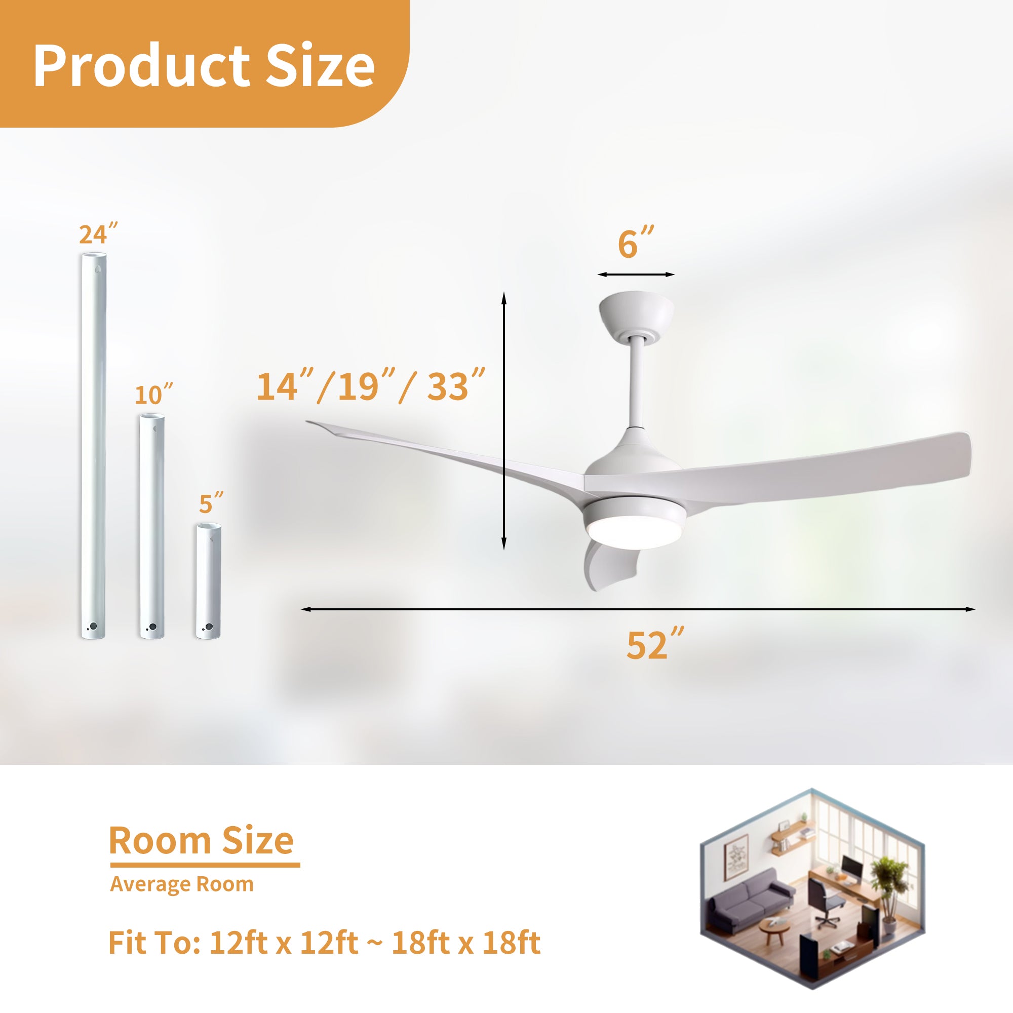 AuraVista Lite 52 in. Modern White Ceiling Fan with 18W LED Light and Remote Control 3 ABS Blades Noiseless Reversible DC Motor