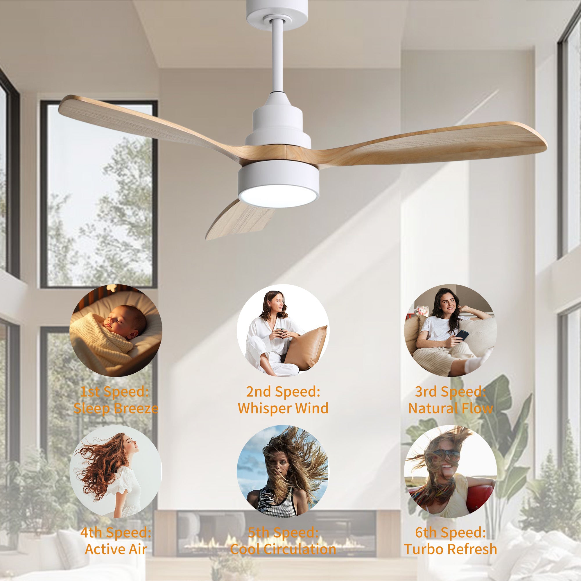 AuraVista Classic 48 in. Solid Wood Ceiling Fan with Dimmable Light 6 Speed Reversible DC Motor