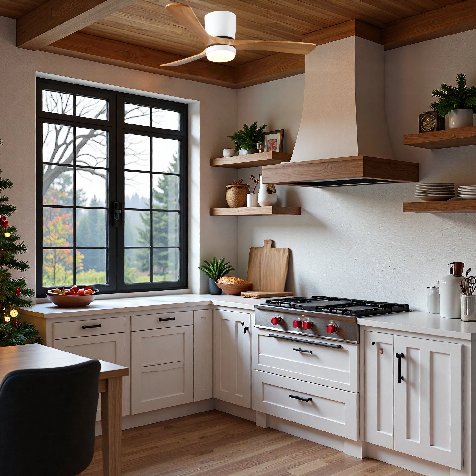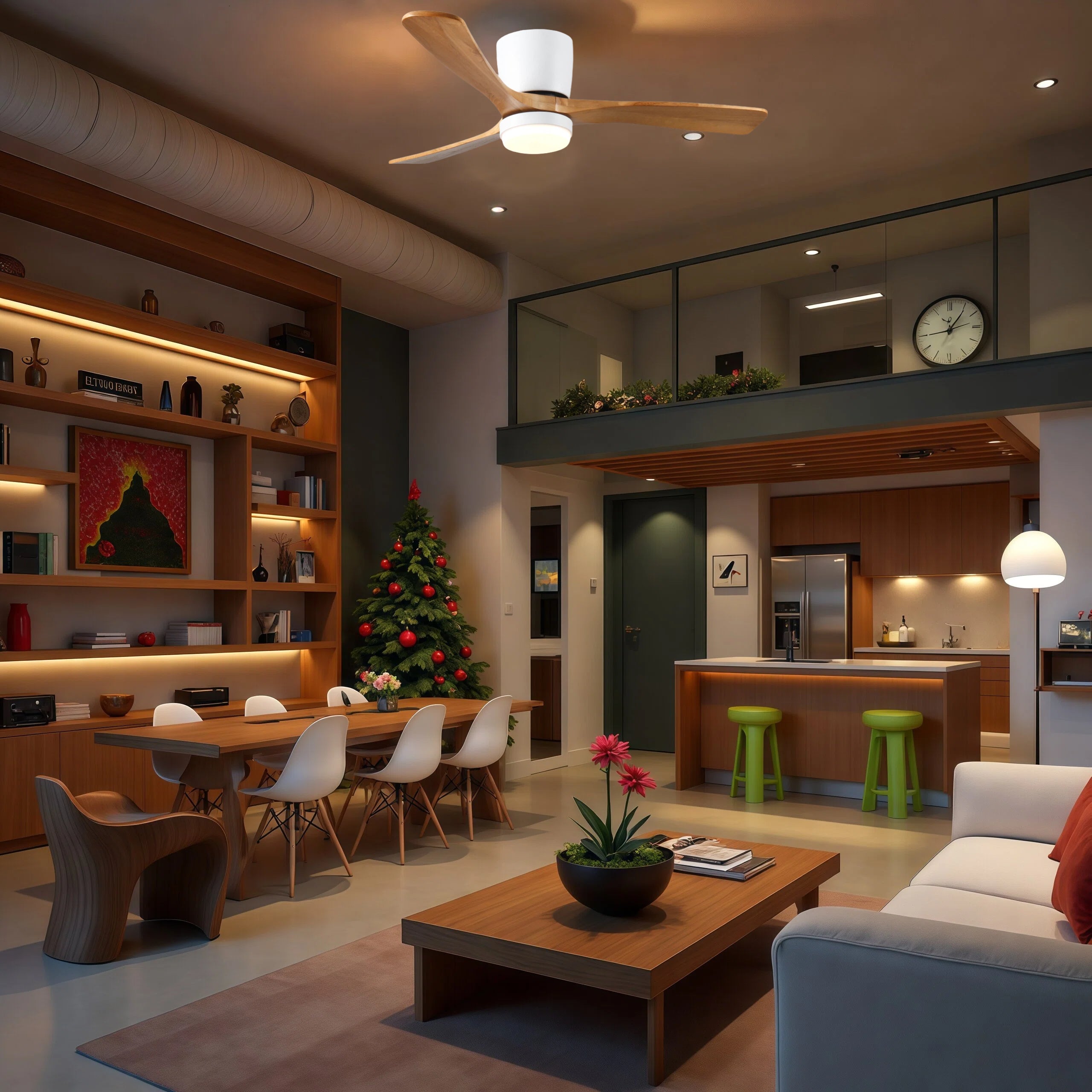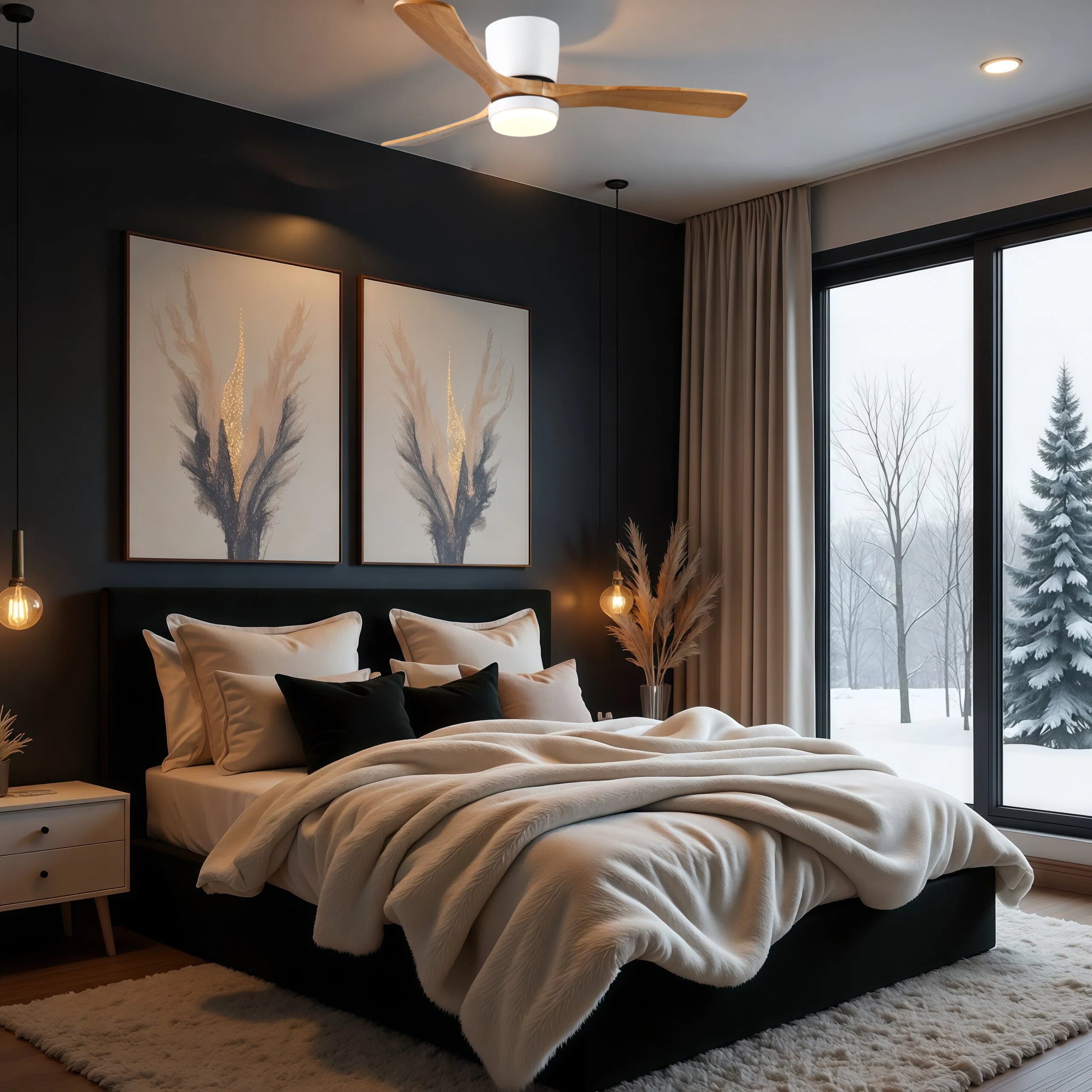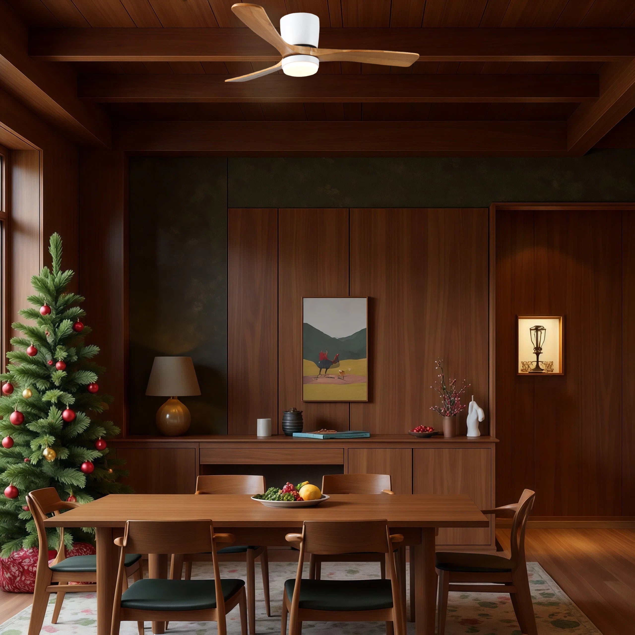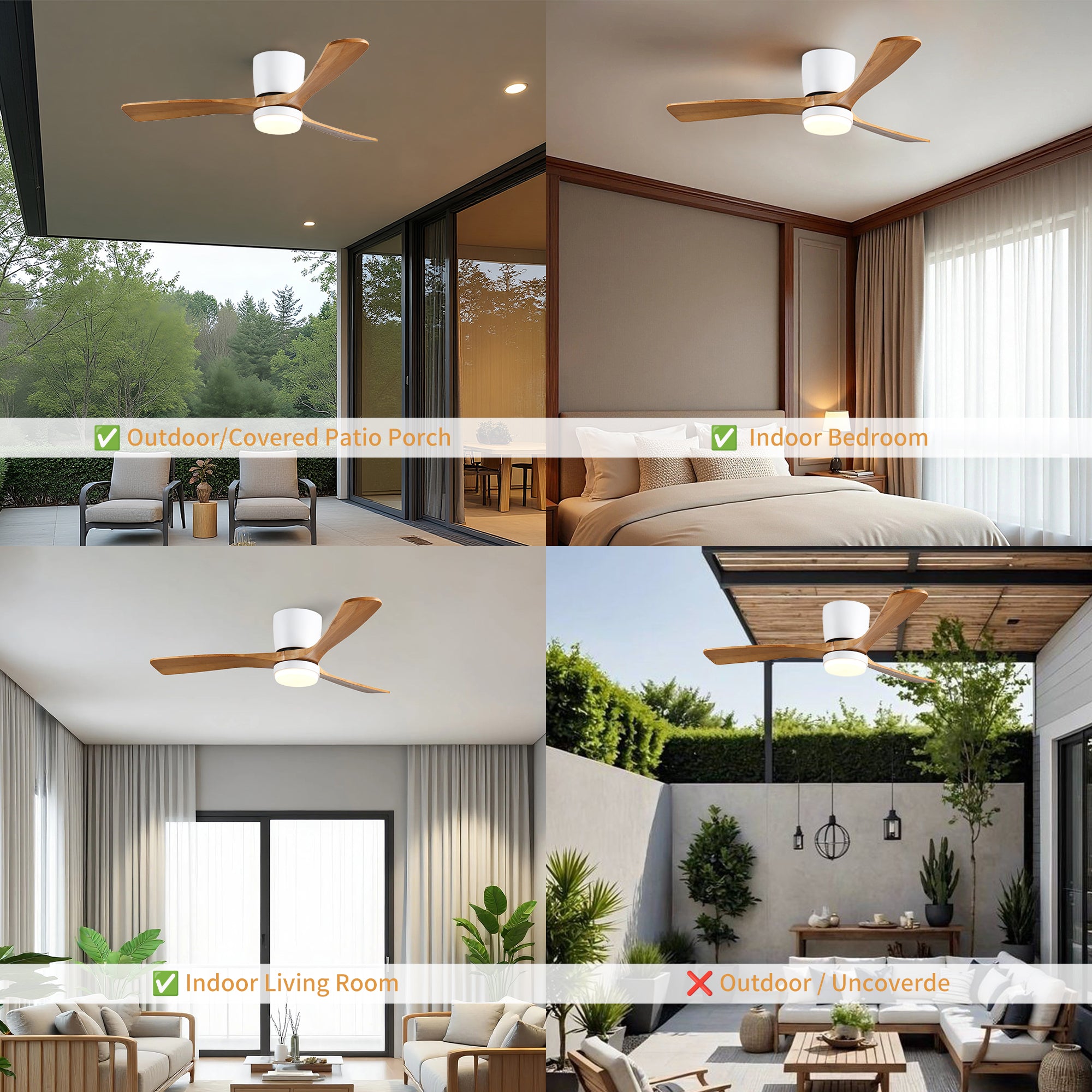 Enjoy your summer with the Serenityshine 42 in. Natural White ceiling fan with light-a quiet, flush-mount design from Modern Habitat Inc. The three Walnut wood blades feature a modern farmhouse style with a quiet DC motor that provides six adjustable speeds and two timeisettings with remote control. With a 10.8 in. height, it provide sample airflow for spaces between 200-400 square feet, perfect for living rooms, kitchens, and home office bedrooms-ideal for compact spaces. The fan features easy-install Quiet Motor technology with two airflow modes, quaranteeing minimal noise.